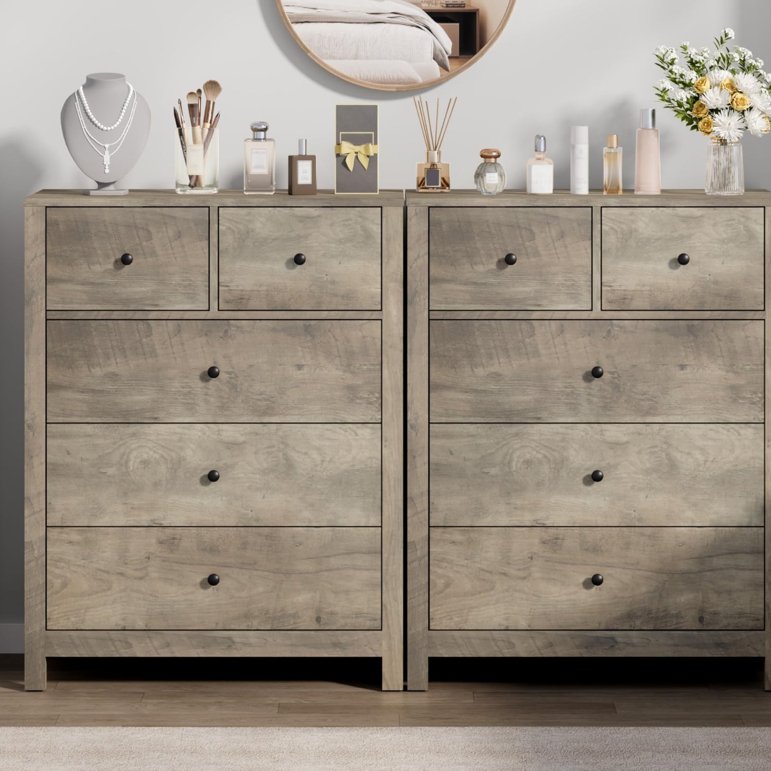 - Rustic Modern Design: This dresser for bedroom features a chic retro grey finish, embodying a contemporary, minimalist look. Its adaptable design harmonizes effortlessly with various home styles