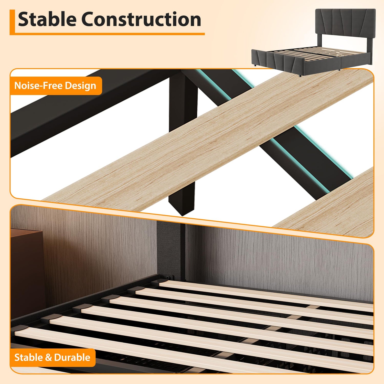 - Noise-Free Sleep Experience: Enjoy a quiet night’s rest thanks to the innovative strips that reduce friction between the slats and the frame. This design minimizes noise, allowing you to unwind and relax without disturbances