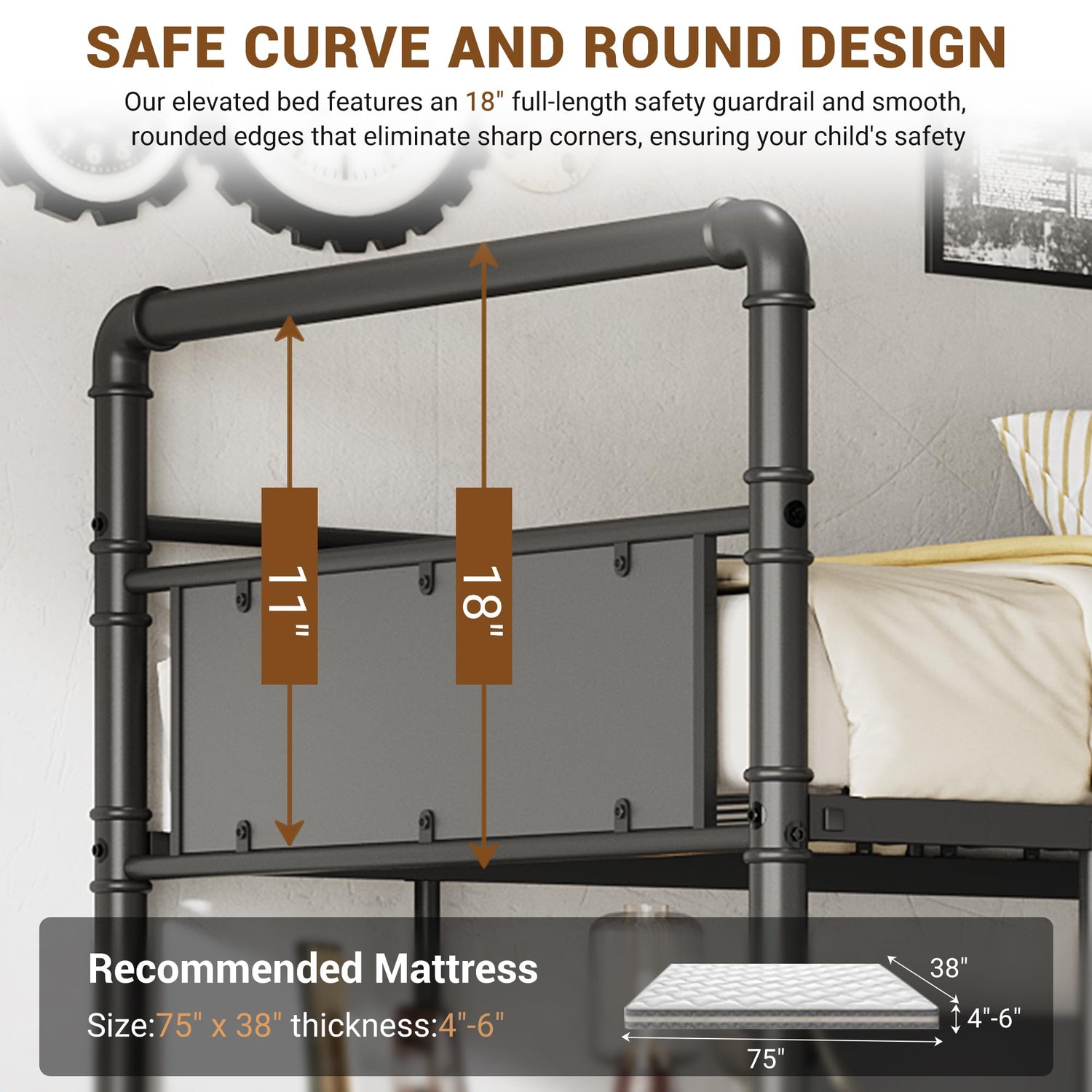 - 【Safety and Convenience】GarveeHome loft beds equip with full-length and heightened guardrails on the upper bunk for secure sleep.Featuring a sturdy metal ladder and safe curve armrests improves comfort and safety for easy access,this bunk bed is designed with both safety and practicality in mind for your teen.