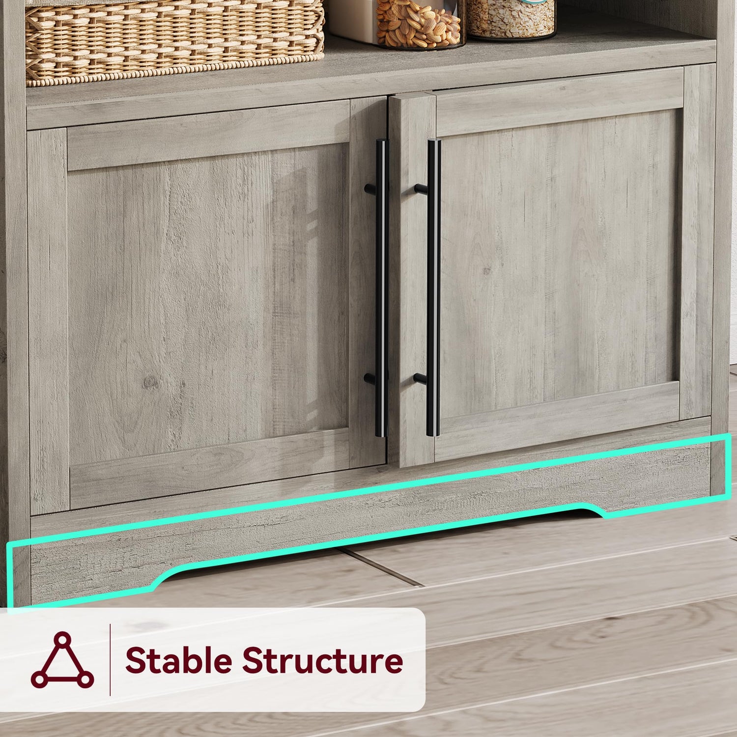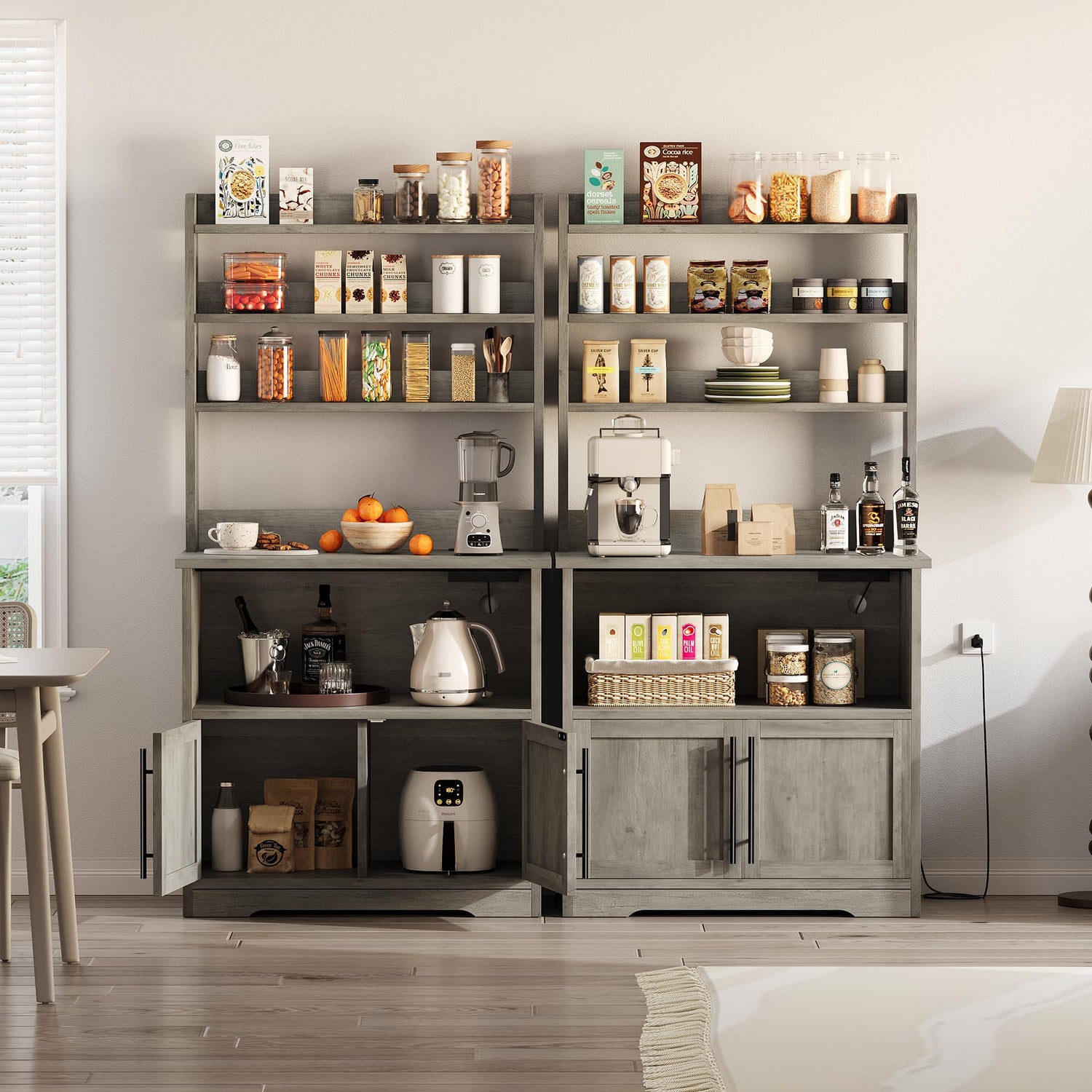 - 4. Versatile Use: This kitchen bakers rack with doors has multiple functionalities and can be placed in the dining room, kitchen, living room, and more. It can serve as a side cabinet, coffee or tea station, or bar counter, providing storage for various kitchen spices or decorative items, maximizing your storage capacity. Its compact, vertical design optimizes space and complements rustic decor in any room