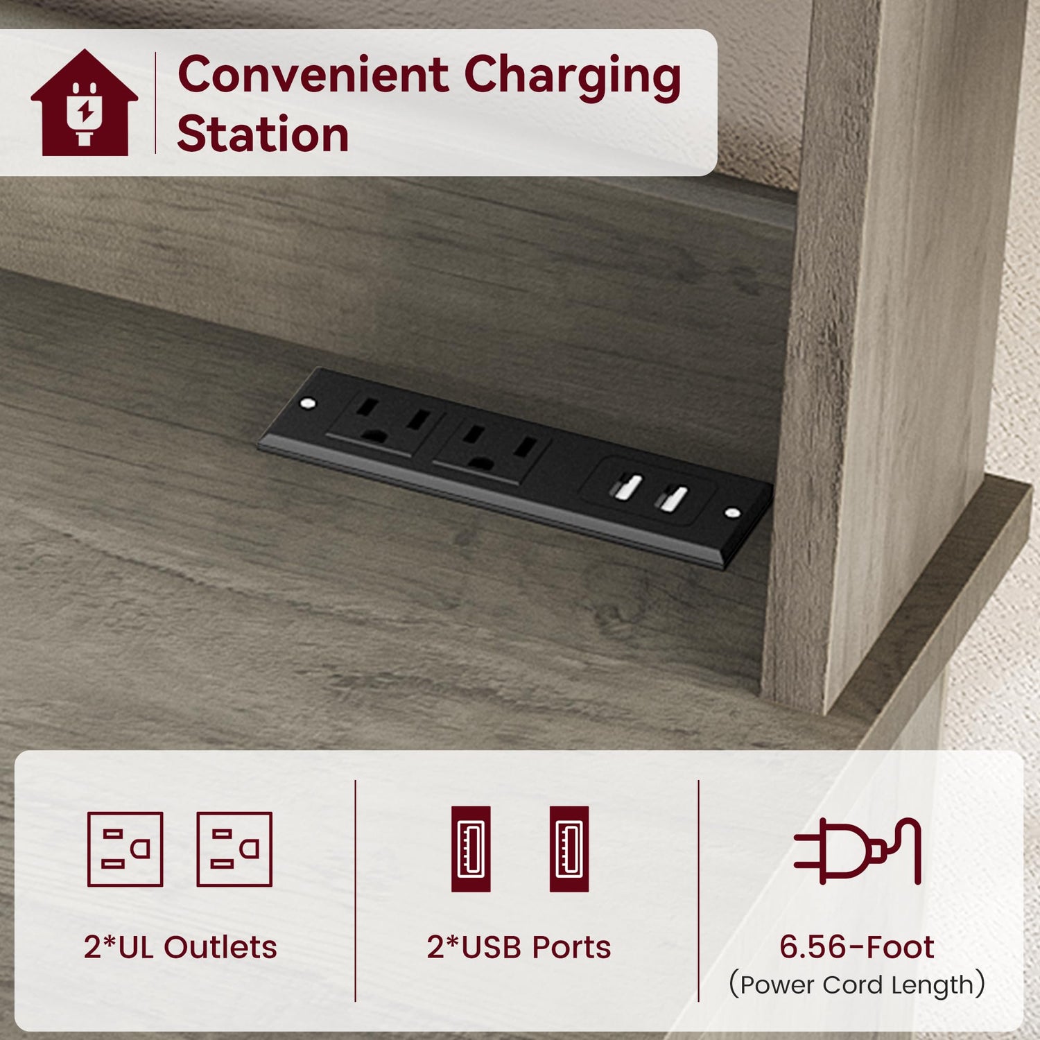 - 1. Convenient Charging Station: The bakers rack features 2 AC power outlets and 2 USB ports, allowing you to easily power appliances such as coffee makers, microwaves, and toasters without the need to purchase additional power strips. You can flexibly use various electrical devices. The circular openings in the cabinet help organize the wires, making your space tidier and safer