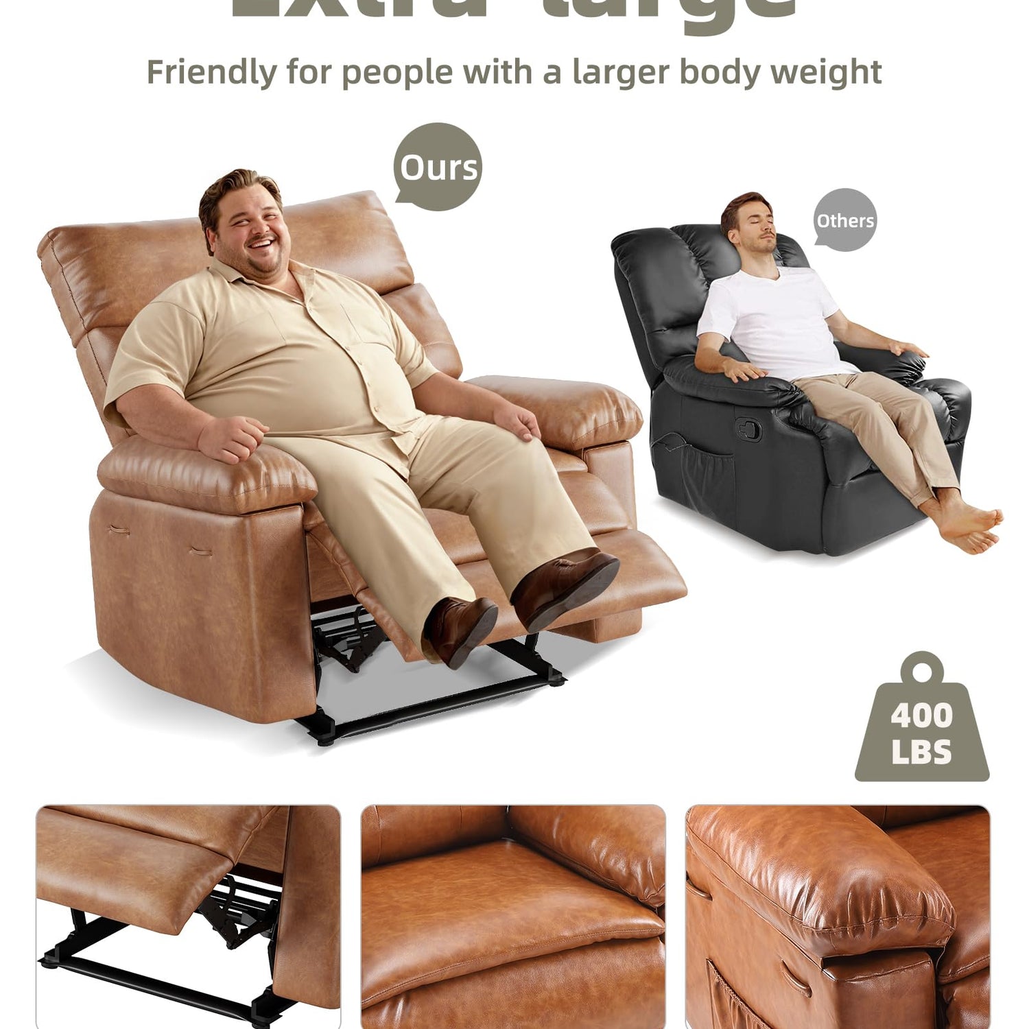 GarveeHome Oversized Recliner Chair - Faux PU Leather Large Manual Recliner for Adults, Exceptional Comfort Lazy Chair with 1.5X Sponge Filling and Easy Recline Mechanism for Relaxation