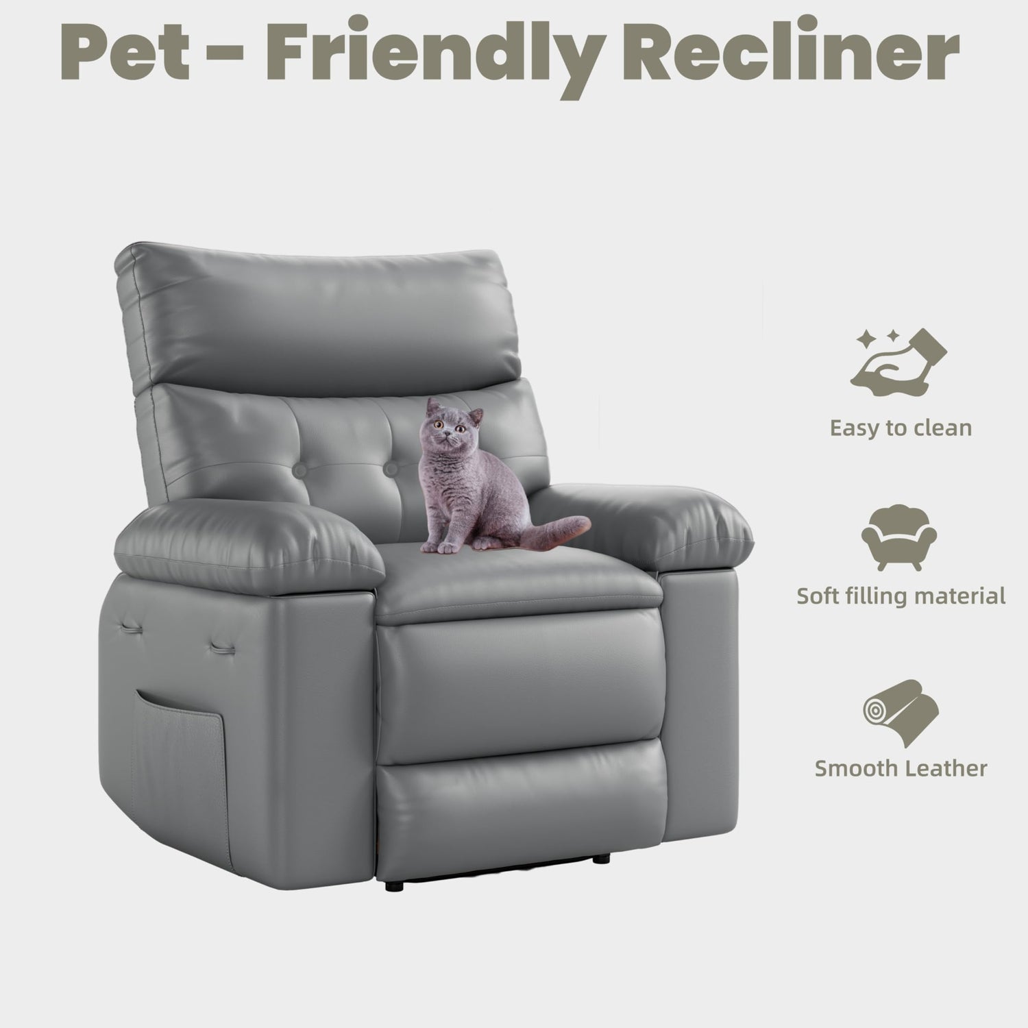 - 【Durable PU Leather】 Crafted from high-quality PU leather, this recliner combines a sleek look with easy maintenance, making it both stylish and practical for any living space