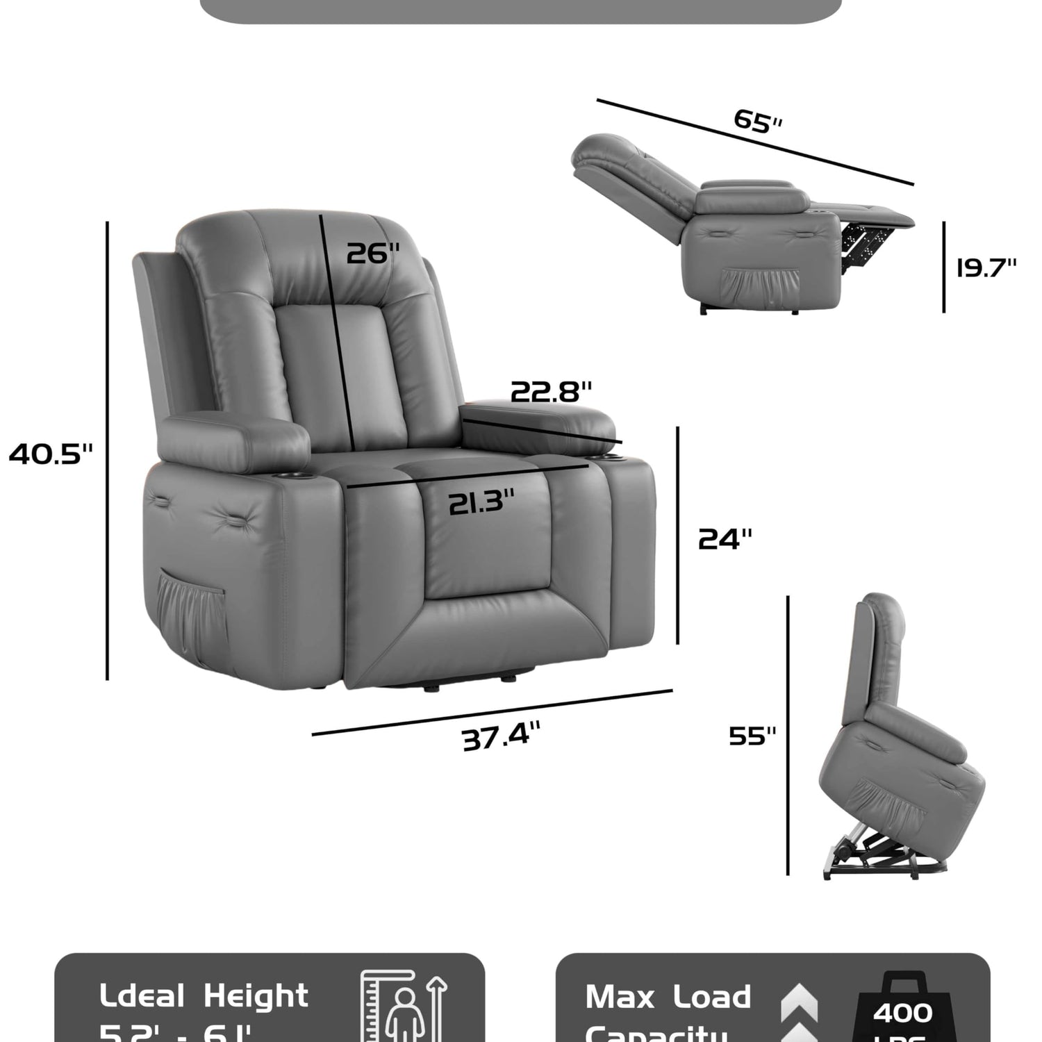 - 【Product Dimensions】The Power Lift Recliner Chair measures 38.6 x 37.4 x 40.6 inches, seat width: 21.3 inches, weight capacity:400 lbs, making it a sturdy and spacious choice for seniors and those with limited mobility