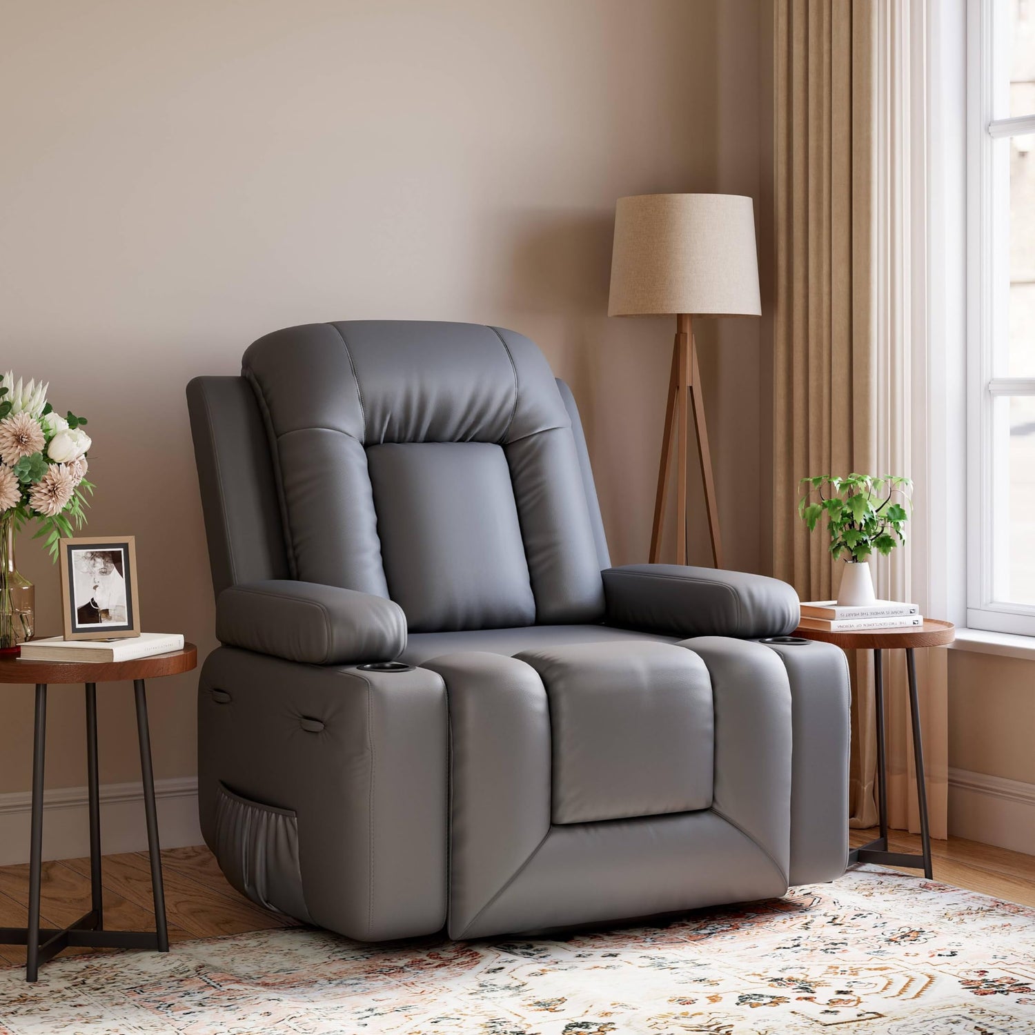 - 【Premium Quality Materials】Crafted from high-quality faux PU leather, this recliner is both wear-resistant and waterproof, ensuring long-lasting durability. The robust metal frame provides a solid foundation, guaranteeing safety and stability for daily use