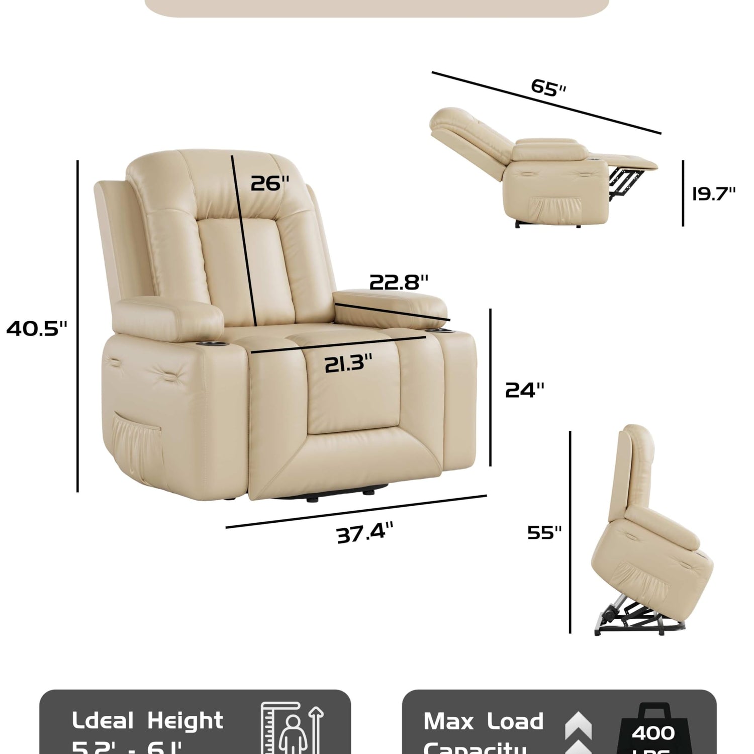 - 【Product Dimensions】The Power Lift Recliner Chair measures 38.6 x 37.4 x 40.6 inches, seat width: 21.3 inches, weight capacity:400 lbs, making it a sturdy and spacious choice for seniors and those with limited mobility