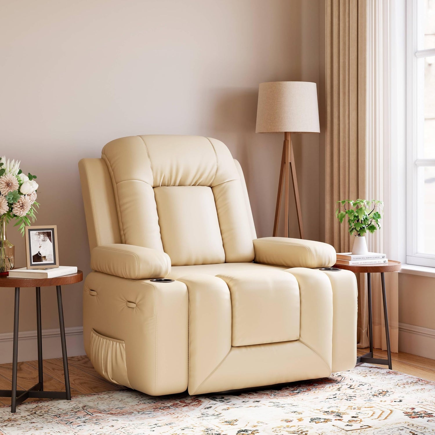 - 【Premium Quality Materials】Crafted from high-quality faux PU leather, this recliner is both wear-resistant and waterproof, ensuring long-lasting durability. The robust metal frame provides a solid foundation, guaranteeing safety and stability for daily use