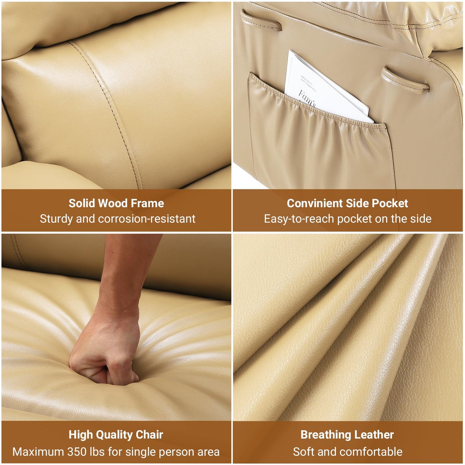 GarveeHome Power Lift Recliner Chair PU Leather with Massage for Elderly Ergonomic Lounge Chair Classic Single Sofa with 2 Cup Holders Side Pocket (Beige, 22" Seat Width + Cup Holder)