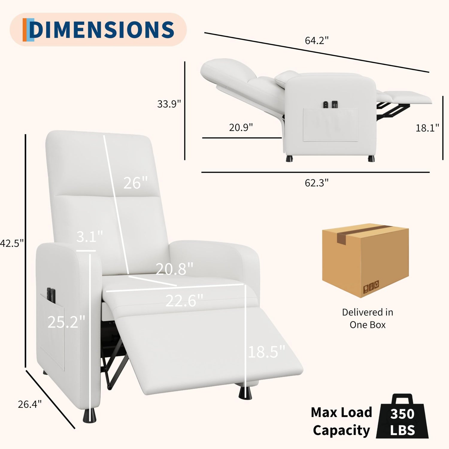 GarveeHome Power Recliner Chair, Adjustable Electric Recliner Ergonomic Overstuffed PU Leather Single Sofa, Tall Back, Padded Seat, 2 Side Pockets and USB Port, Home Theater Seating for Living Room