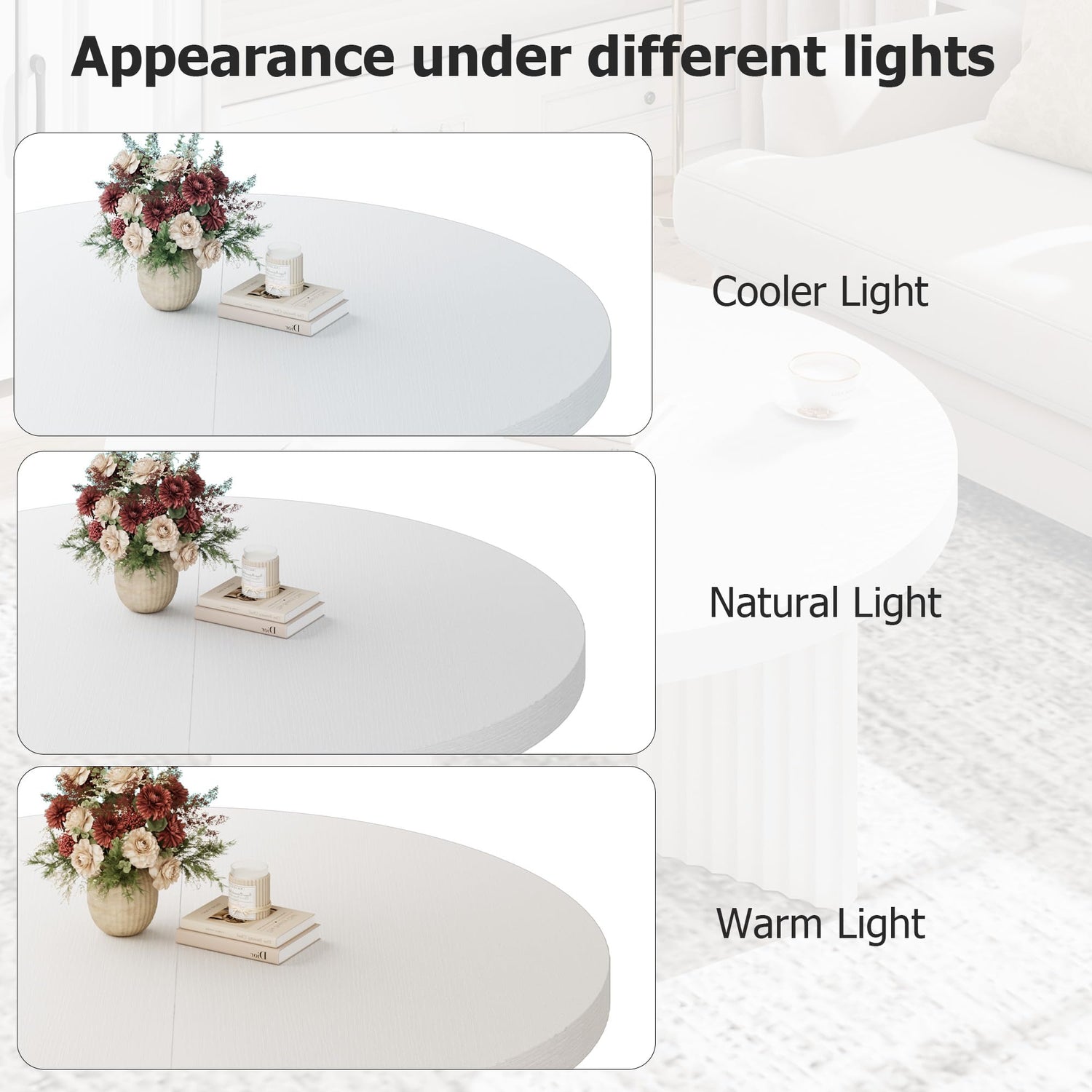 GarveeHome Round Coffee Table, Farmhouse Small Wooden Coffee Table with 3 Strong Legs, Easy Assembly, 33.5'' x 15.7'', White