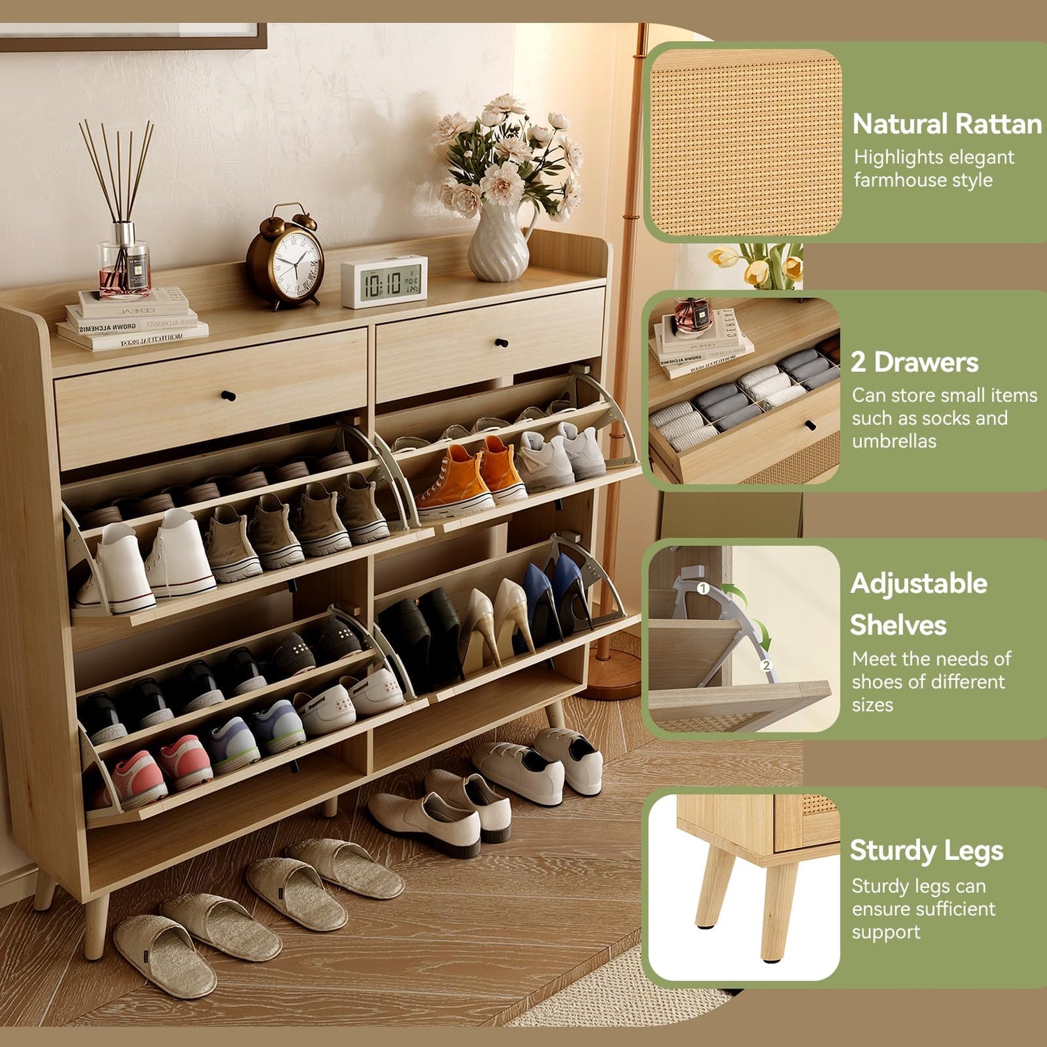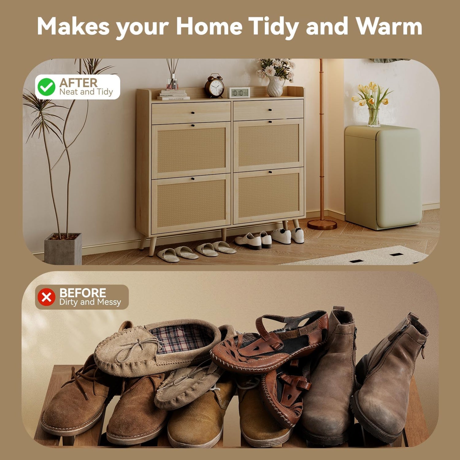 GarveeHome Shoe Cabinet with 4 Rattan Flip Drawers & 2 Drawer, Hidden Free-Standing Shoe Rack, Wooden Shoe Storage Cabinet with Legs for Entryway Hallway, Living Room