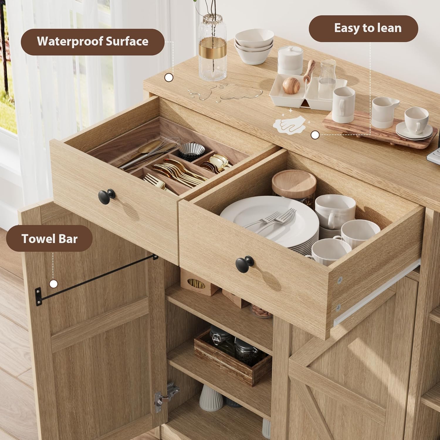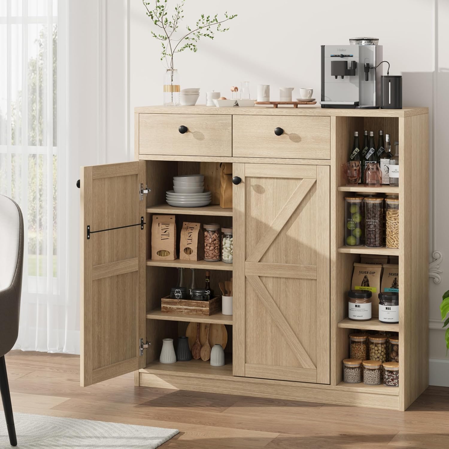 GarveeHome Shoe Storage Cabinet with Doors and Drawers, 42'' Tall Modern Shoe Cabinet with 3 Adjustable Shelves and Stable Base, 4-Tier Shoes Rack Organizer Cabinet for Entryway, Front Door, Natural