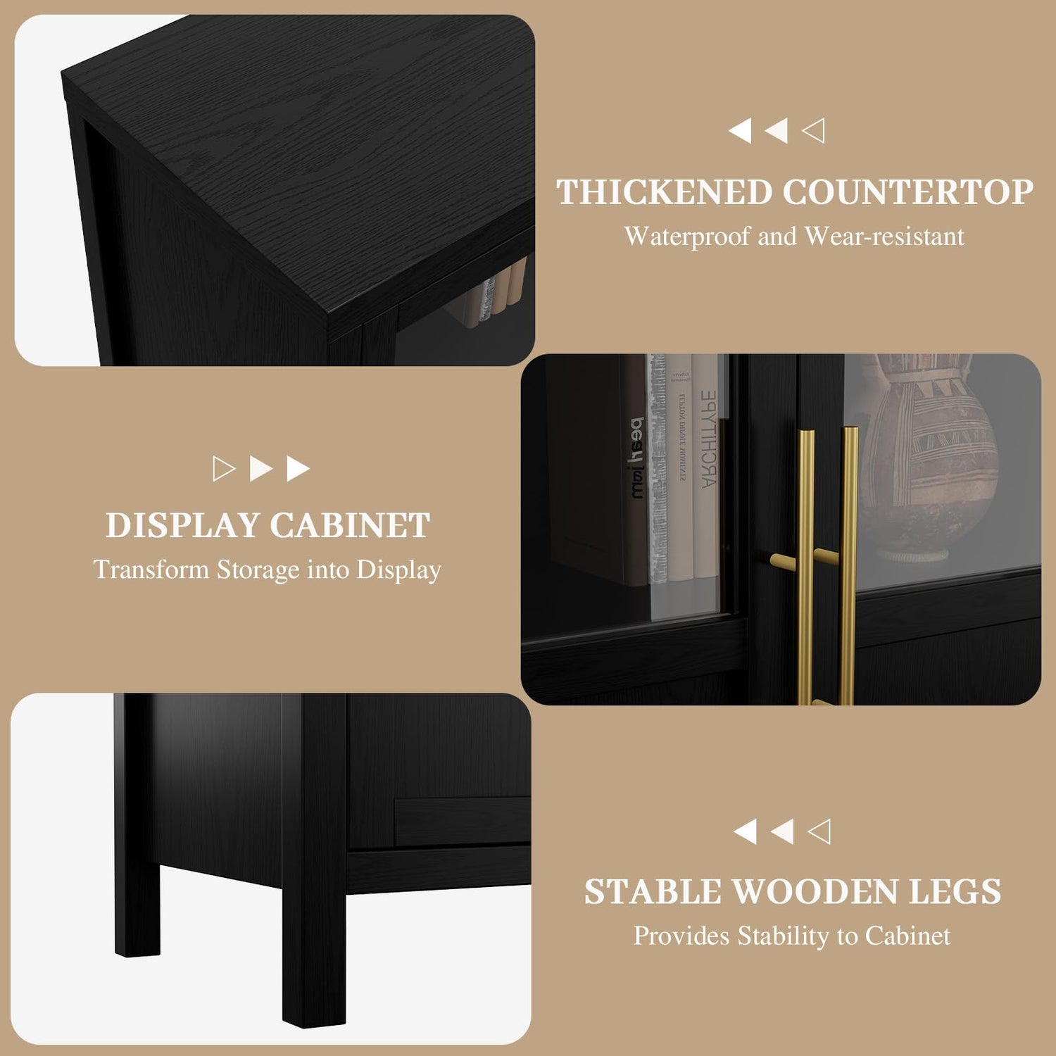 - Elegant Showcase: The glass door sideboard buffet cabinet showcases dinnerware and decor, adding elegance and openness to any room, while the wooden parts provide privacy for less frequently used items, keeping your space organized and tidy.
