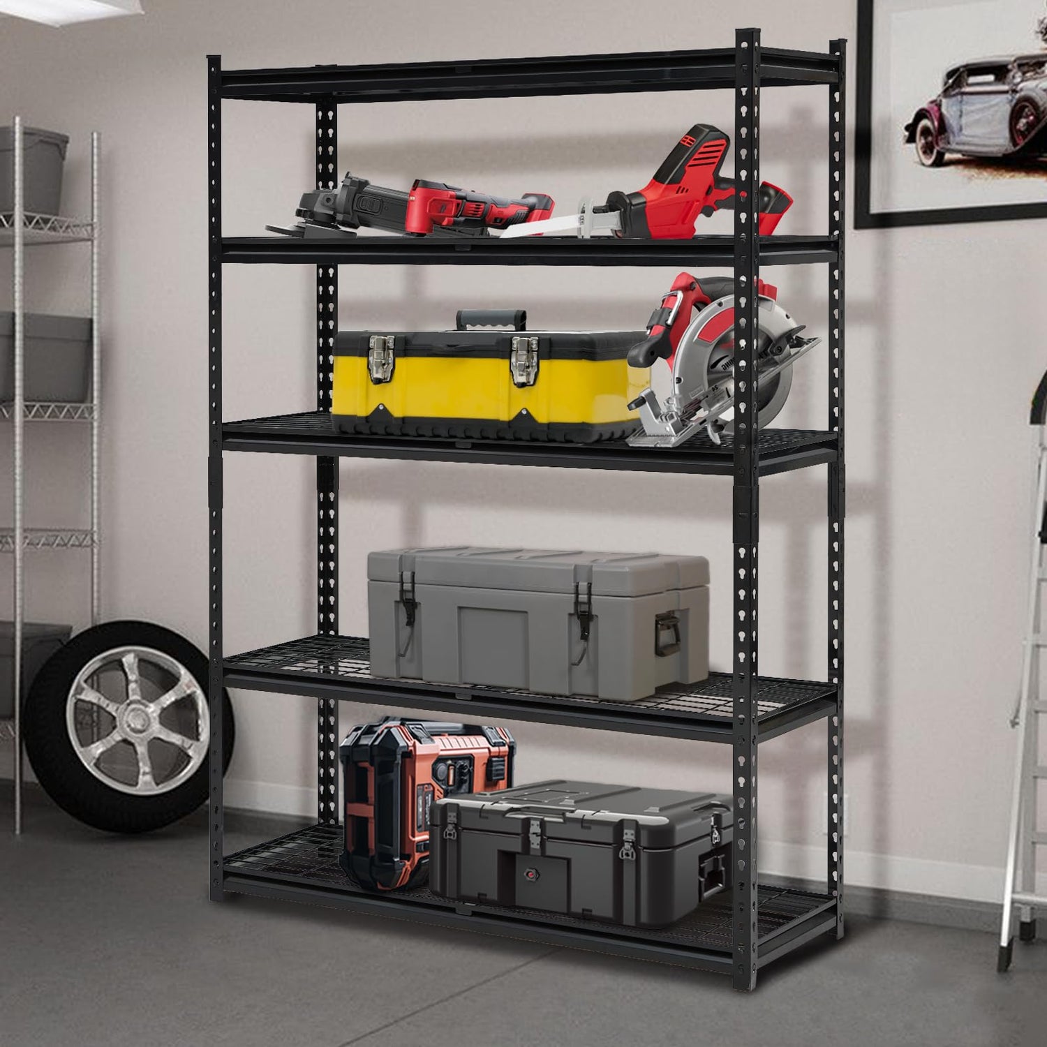 - Heavy-Duty Construction: Built with industrial-grade metal, the Storage Shelving Unit offers exceptional durability and stability, making it perfect for garage shelving organizers and storage. Each shelf can support up to 400 LBS, ensuring your heavy tools and equipment are securely stored.