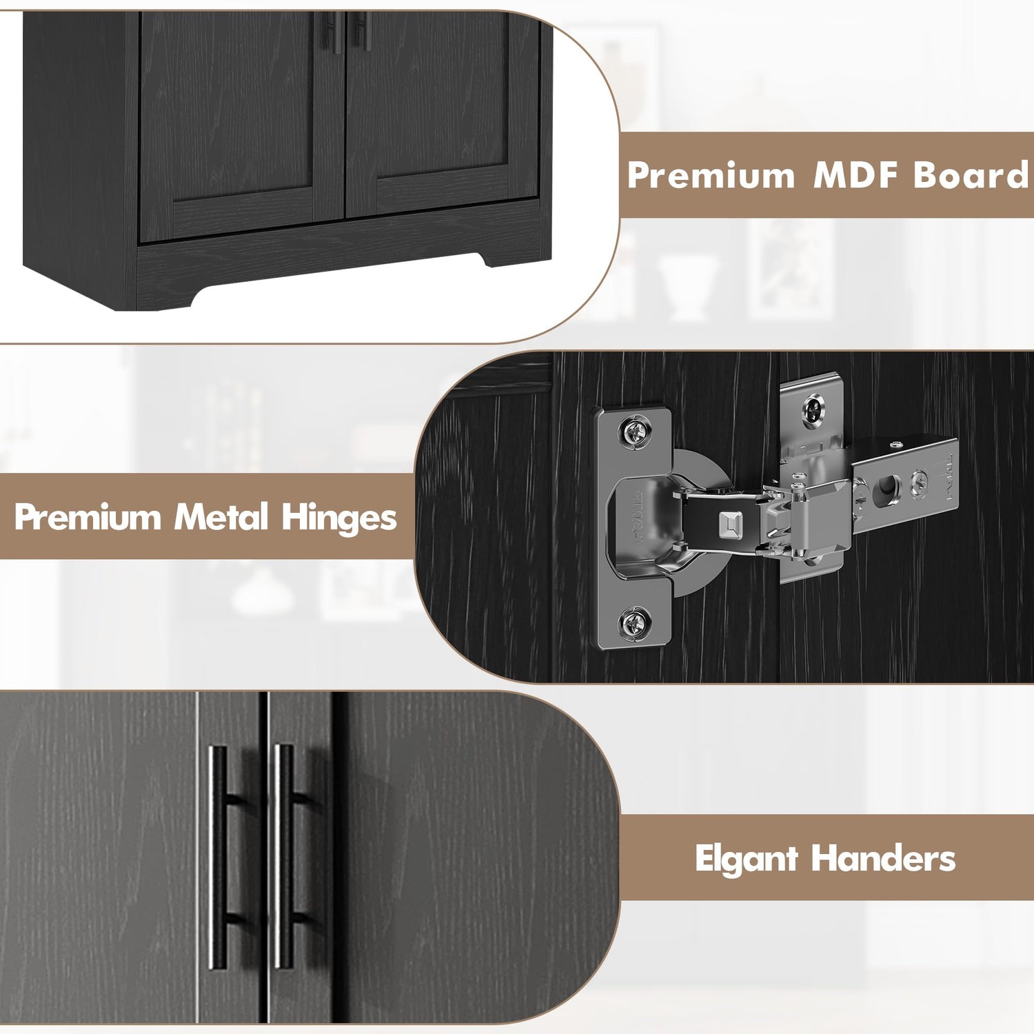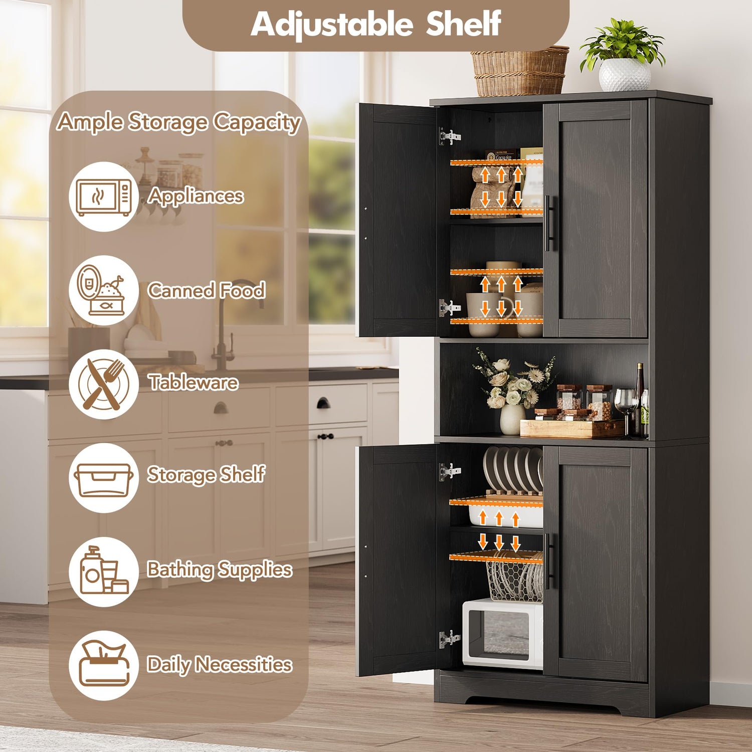 - Optimize Your Storage Experience: Enjoy well-designed storage that offers lasting functionality. This tall kitchen pantry features 2 adjustable shelves, allowing you to customize the space for items of various sizes or remove all shelves for a spacious display alcove. The height is tailored for adult comfort, oversized coated metal handles provide a secure grip, and high-quality hinges ensure smooth door operation