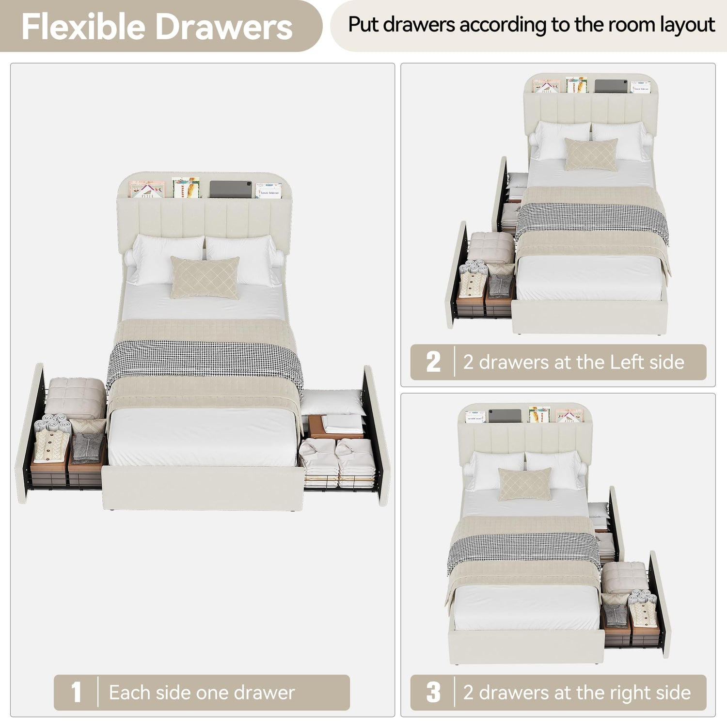- --Effortless Organization: This twin bed includes 2 roomy drawers that can be positioned in any of the four locations underneath, offering flexible storage solutions tailored to your space. Ideal for neatly organizing clothes, toys, or extra bedding, it maximizes room efficiency in smaller bedrooms