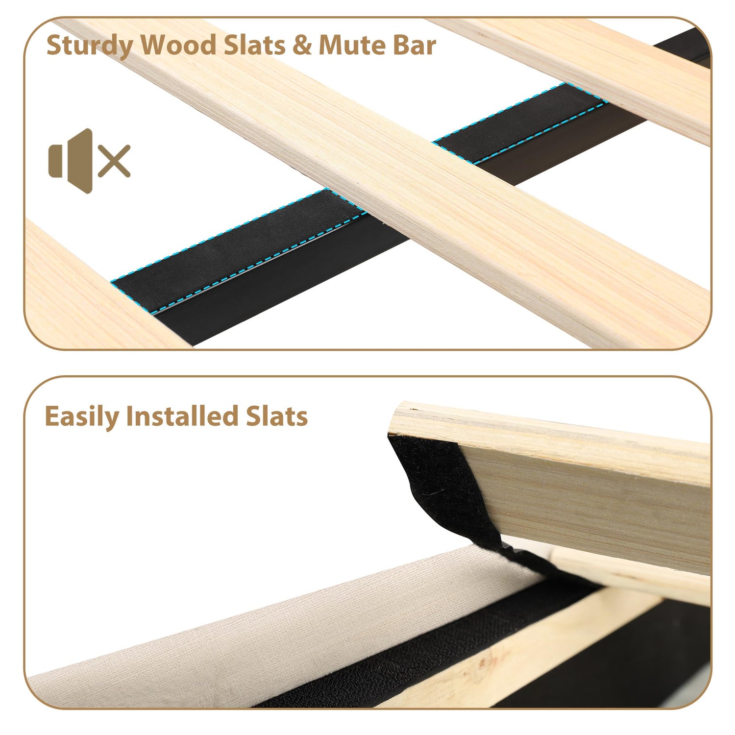 - No Box Spring Needed: With sturdy wooden slats, the upholstered bed frame supports and extends the life of your latex, memory foam, or spring mattress, eliminating the need for a box spring.