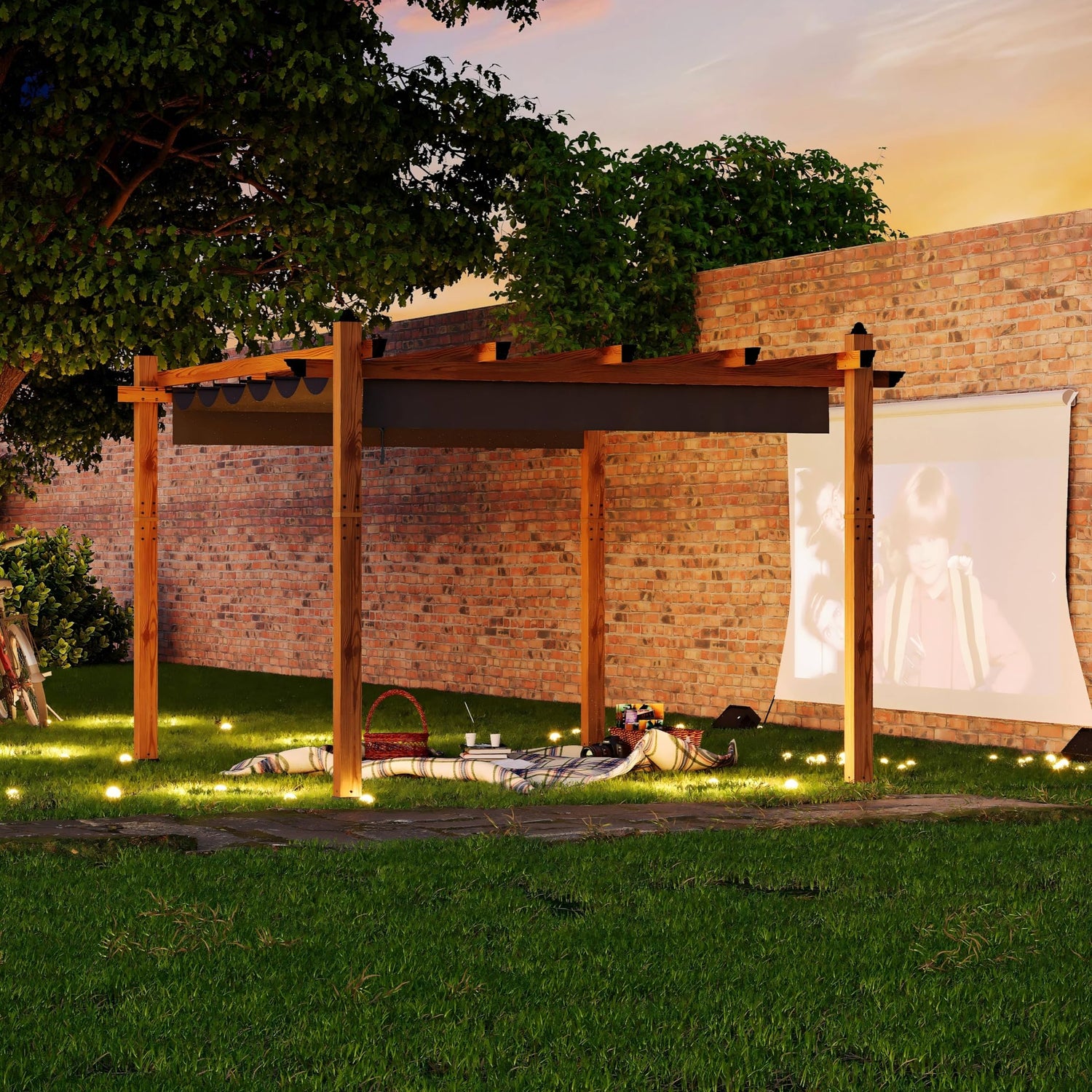 GarveeLife 10 x 13 Ft Wood-Grain Aluminum Pergola Outdoor Pergola with Retractable Canopy Sun Shade Shelter for Garden, Patio, Backyard, Deck - Gray