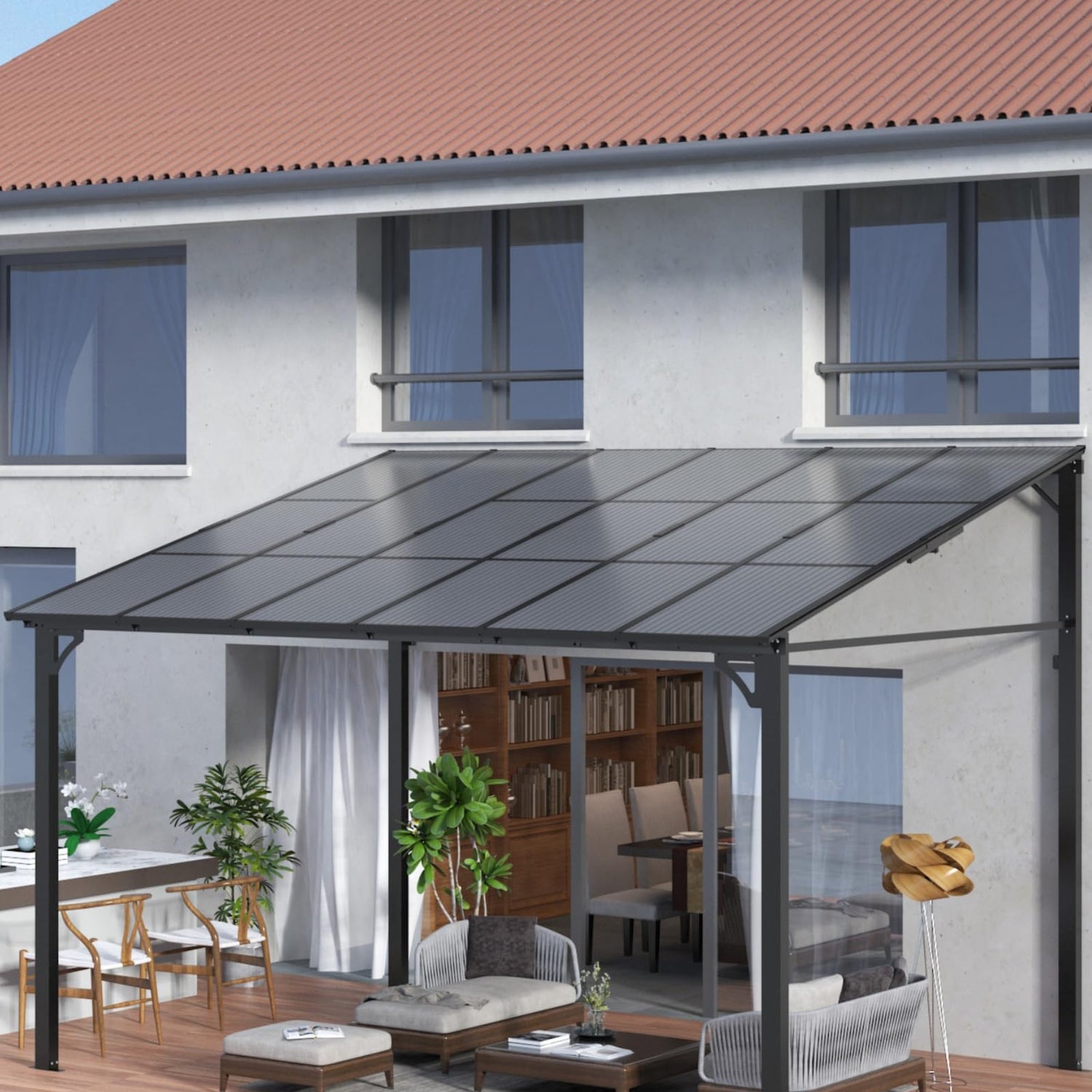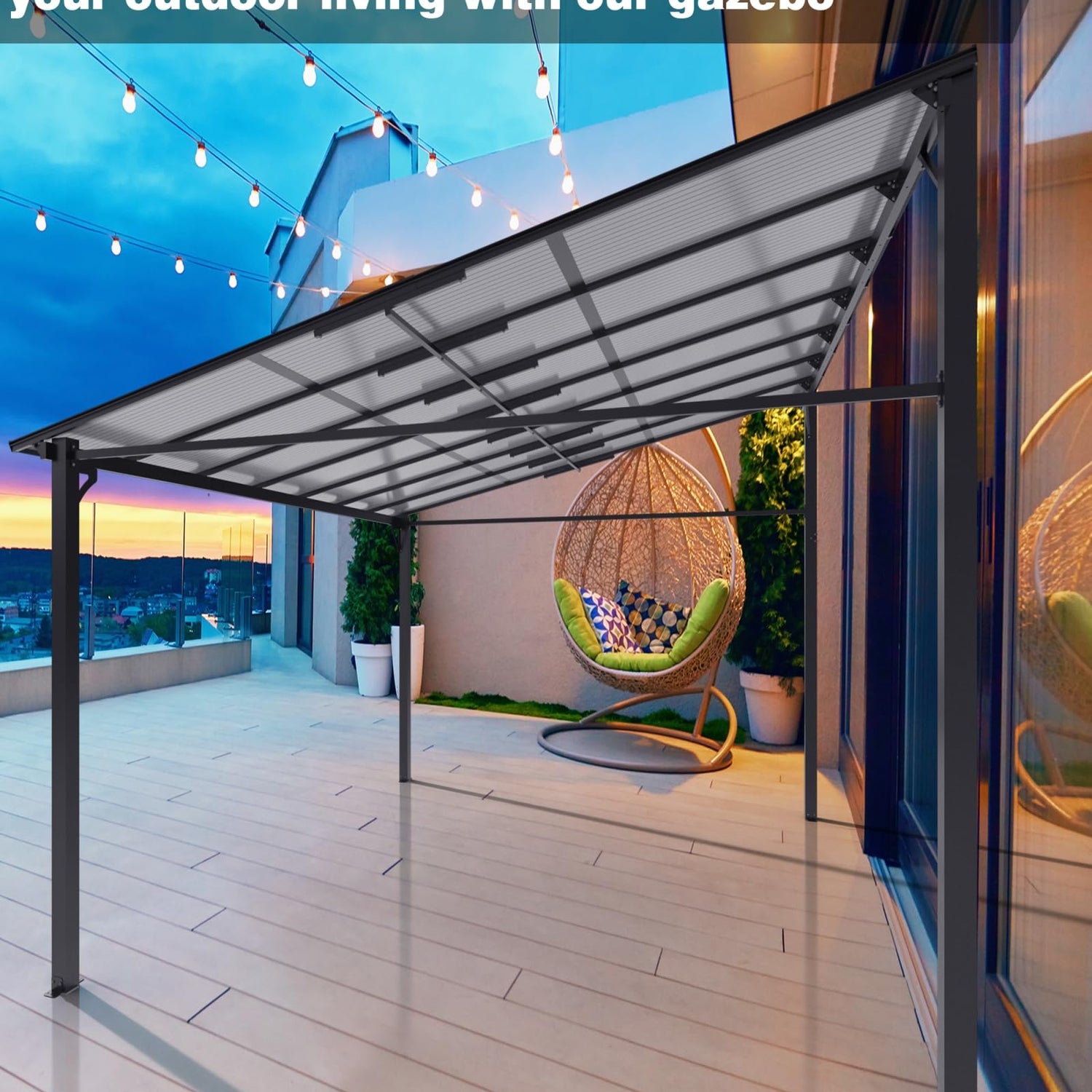 GarveeLife 10'x 10' Lean to Gazebo, Hardtop Wall Pergola with Polycarbonate Roof, Aluminum Frame Mounted Gazebo for Lawn Patio Deck Yard and Party