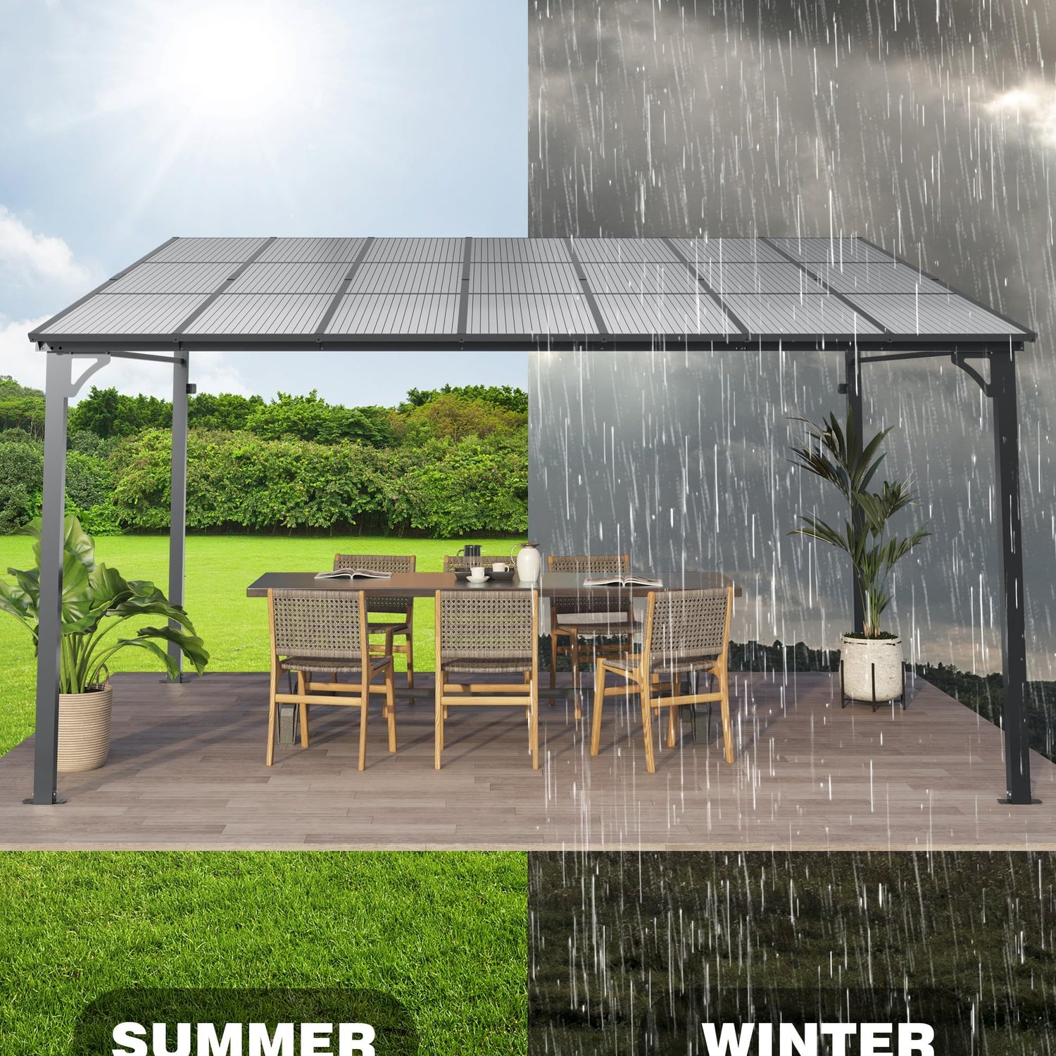 - 【Protection from elements】Wall mounted gazebo provide superior protection from various weather elements, including sun, rain, wind, and snow. The solid roof design of a outdoor patio gazebo offers a shield against harmful UV rays, keeping you and your outdoor furniture safe from sun exposure, effectively blocks rainwater from entering the pergola, allowing you to enjoy the outdoor space even during light showers.