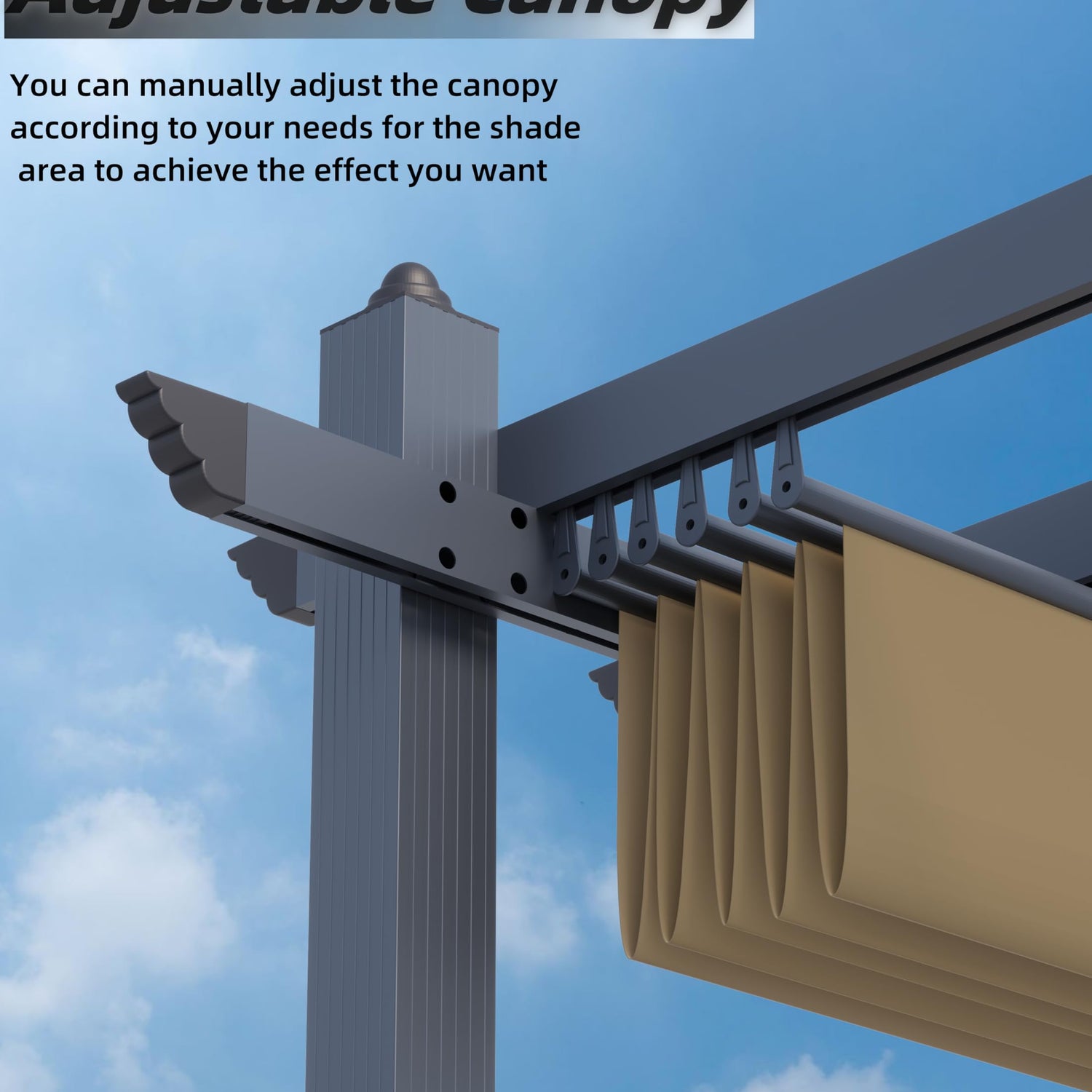 - 【Improved Base Supporting】- This aluminum pergola with retractable canopy has been upgraded for improved stability. Unlike ordinary base columns that only secure two sides, GarveeLife secures all four sides, preventing the entire trellis from wobbling and maintaining perfect stability even in windy conditions.