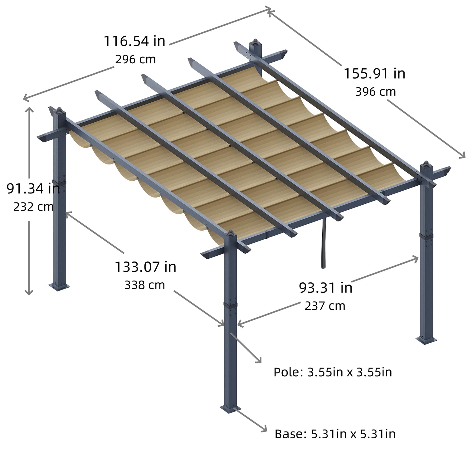 - 【Size Information】- The external dimensions of this 10x13 pergola are 9.8'x12.99'x7.8', and the internal usable dimensions are 8.3'x11.41'x7.3'.Please measure your installation space before purchasing.