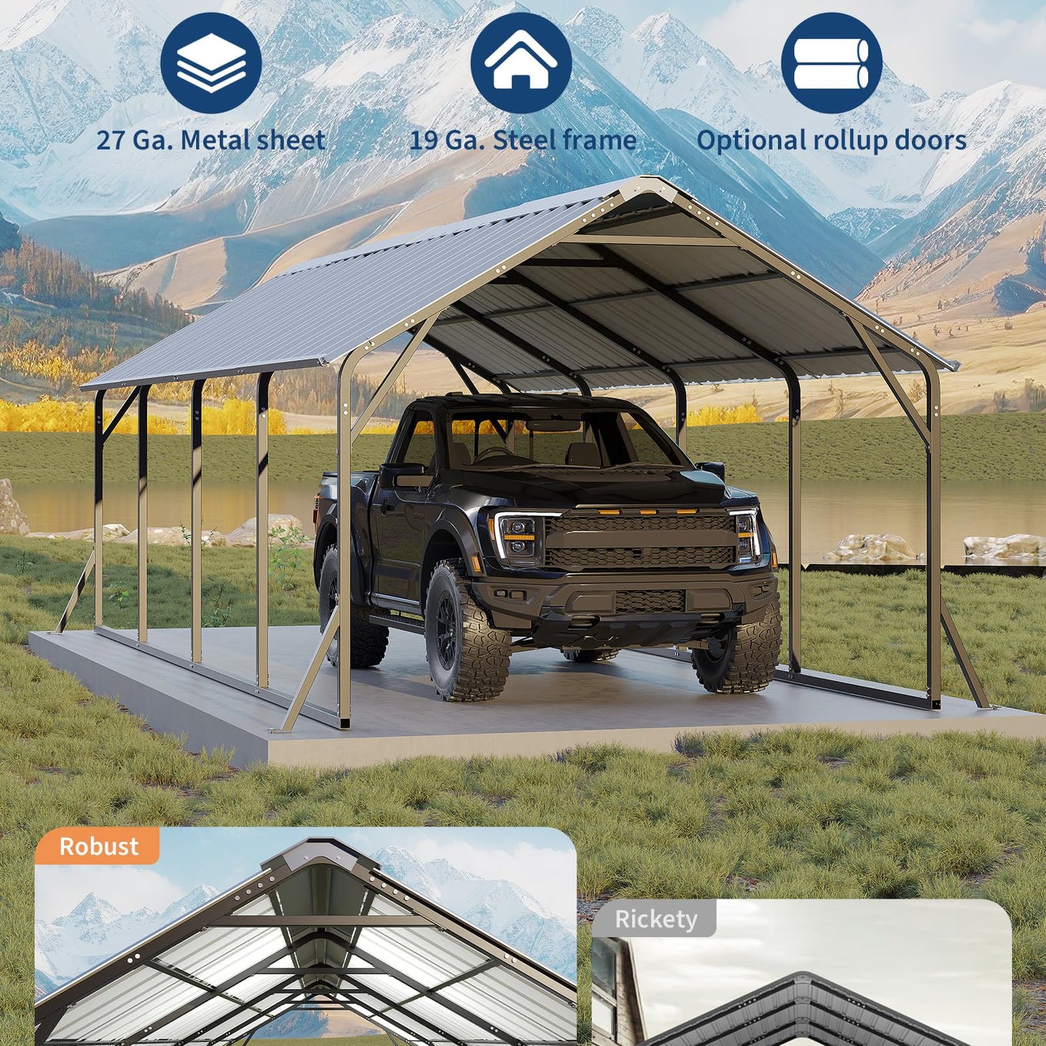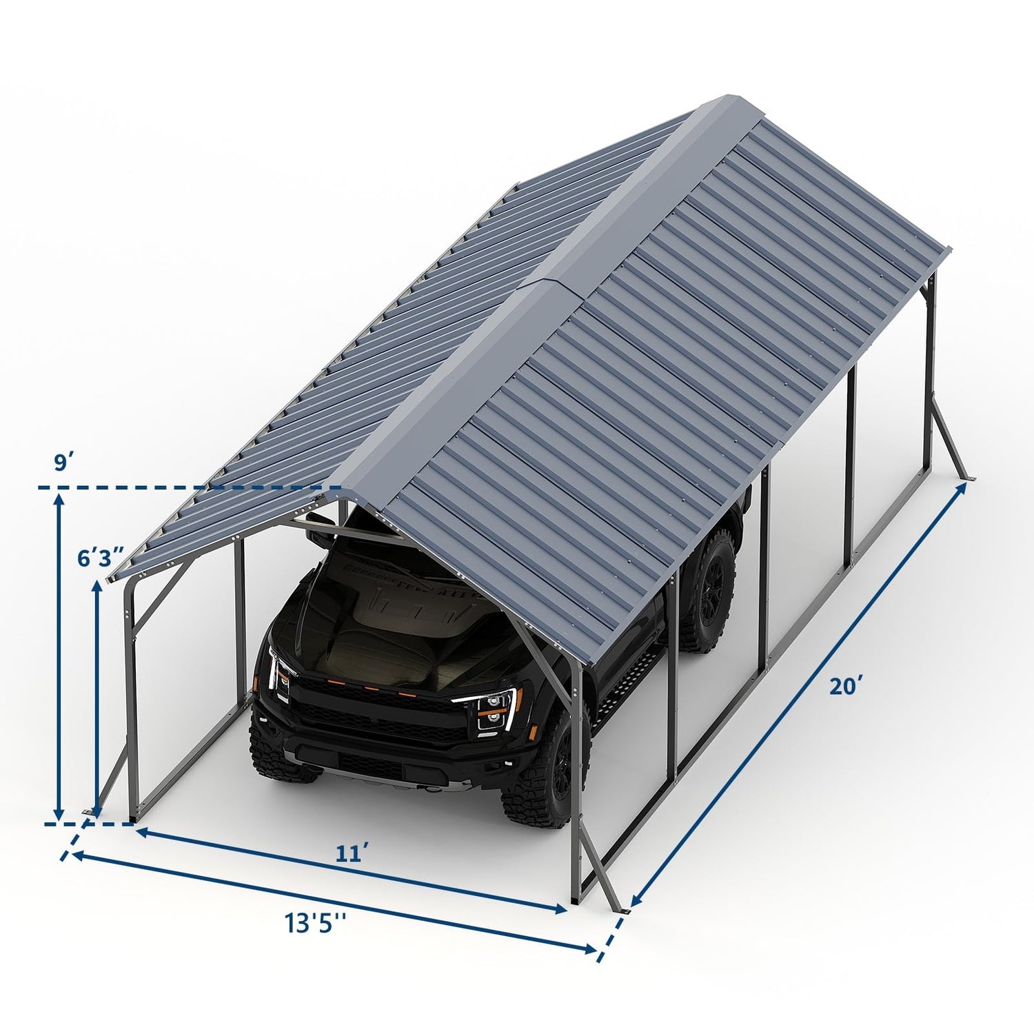 Garveelife 11'x20'x9' Vertical Roof Metal Carport, Heavy Duty Steel Car Ports for All-Weather, for Full-Size Pickup Trucks, Boats, and Tractors