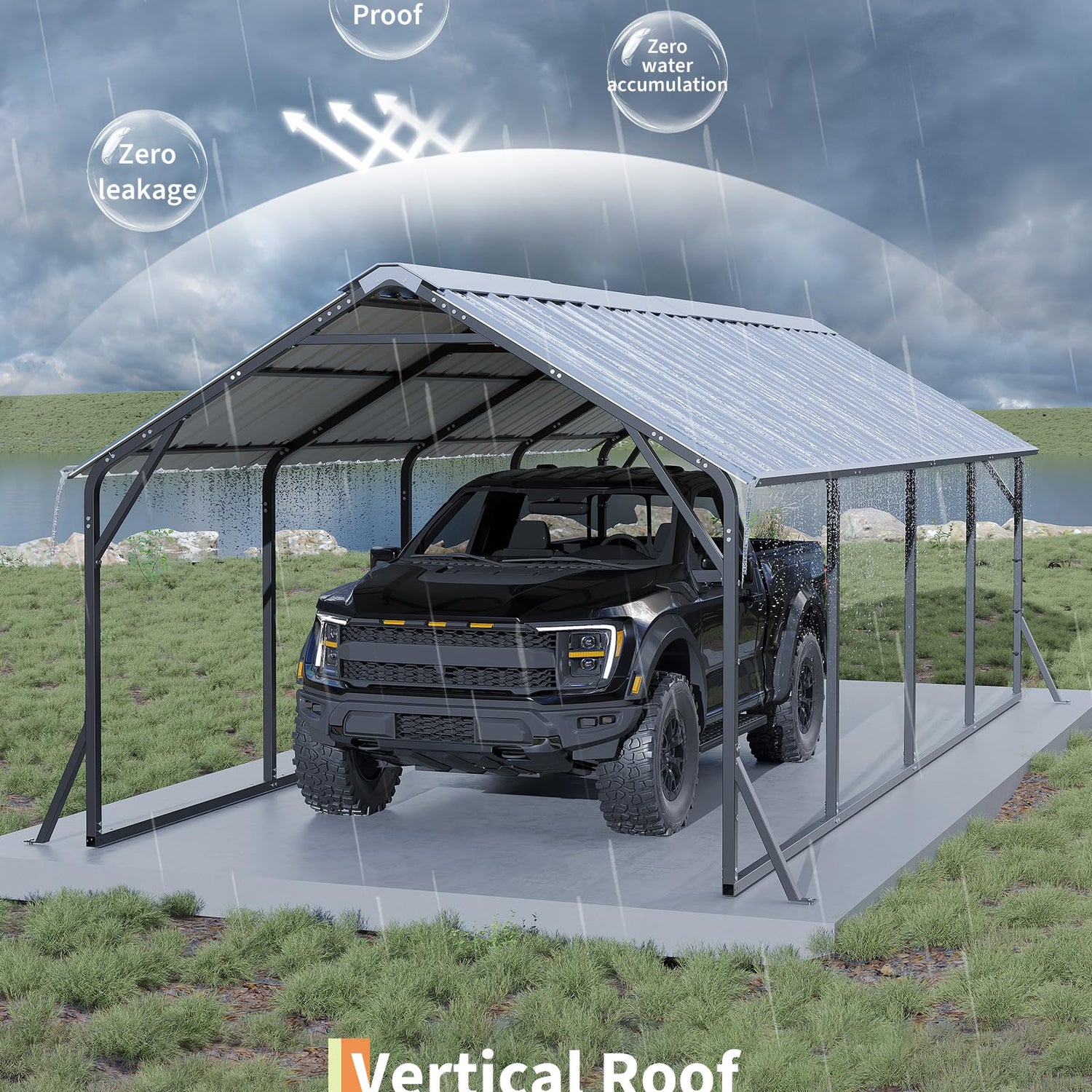 - [Built to Last] 110° roof angle design to increase the top load-bearing capacity by 50%(compared to other 160° flat top carports), with multiple roof & side reinforced bars improving anti-high wind performance up to Beaufort 12