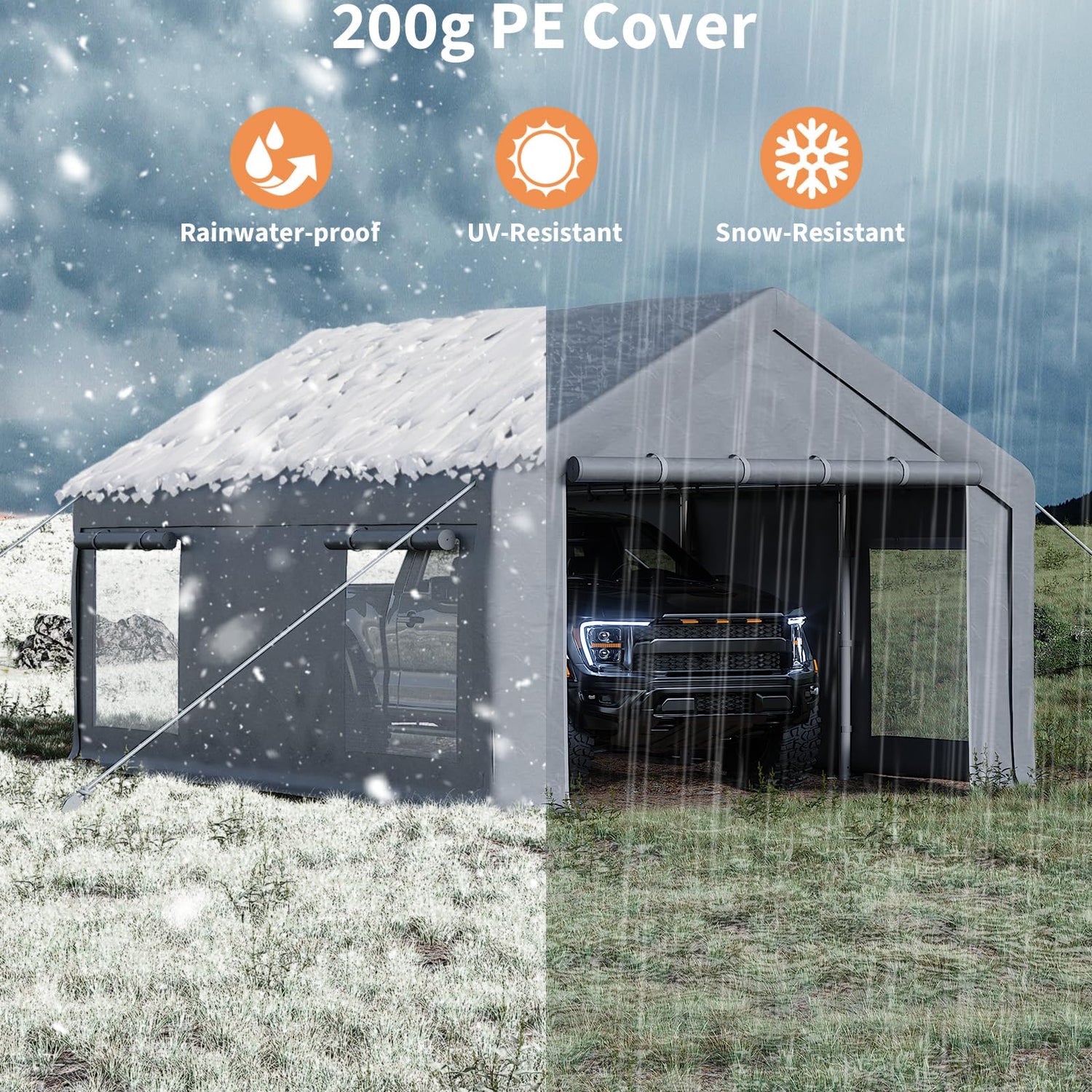 - [Carport Canopy] 200 g heavy duty PE canopy protects your investments from sun exposure and dust; UPF 50+, roof load capability 960 lb