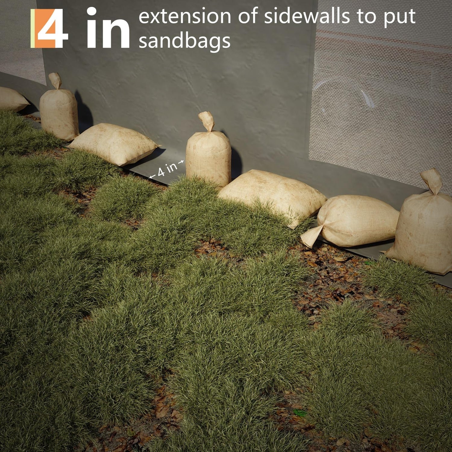- [Warning] Max wind-resistant level Beaufort 7; Carport must be placed on flat ground and must be secured with the ground pegs, guylines, and anchors; When used in windy areas, please add more counterweight such as concrete, sandbags, or steel rope; When used in the winter, must clean the snow(no more than 4 inch) on the roof in case collapse
