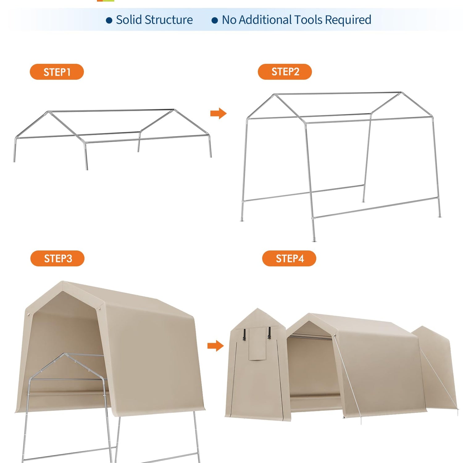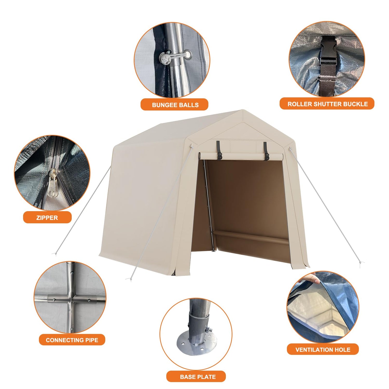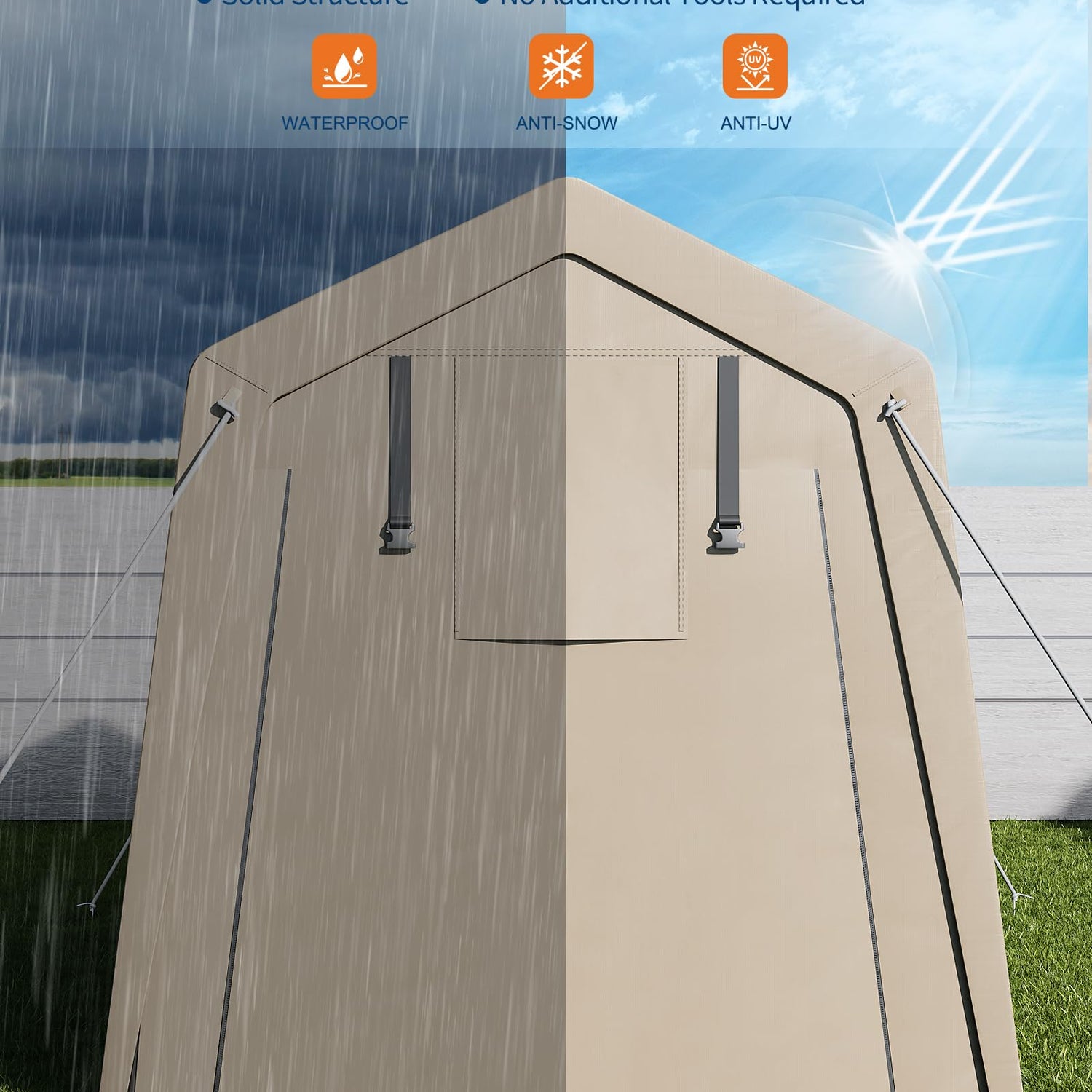 GarveeLife 6x8 FT Portable Outdoor Storage Shed with 2 Roll-Up Zipper Doors & Vents, 240G Heavy-Duty Shelter Waterproof PE Tarp, UV-Resistant Carport for Motorcycle, Firewood, Tools -Khaki