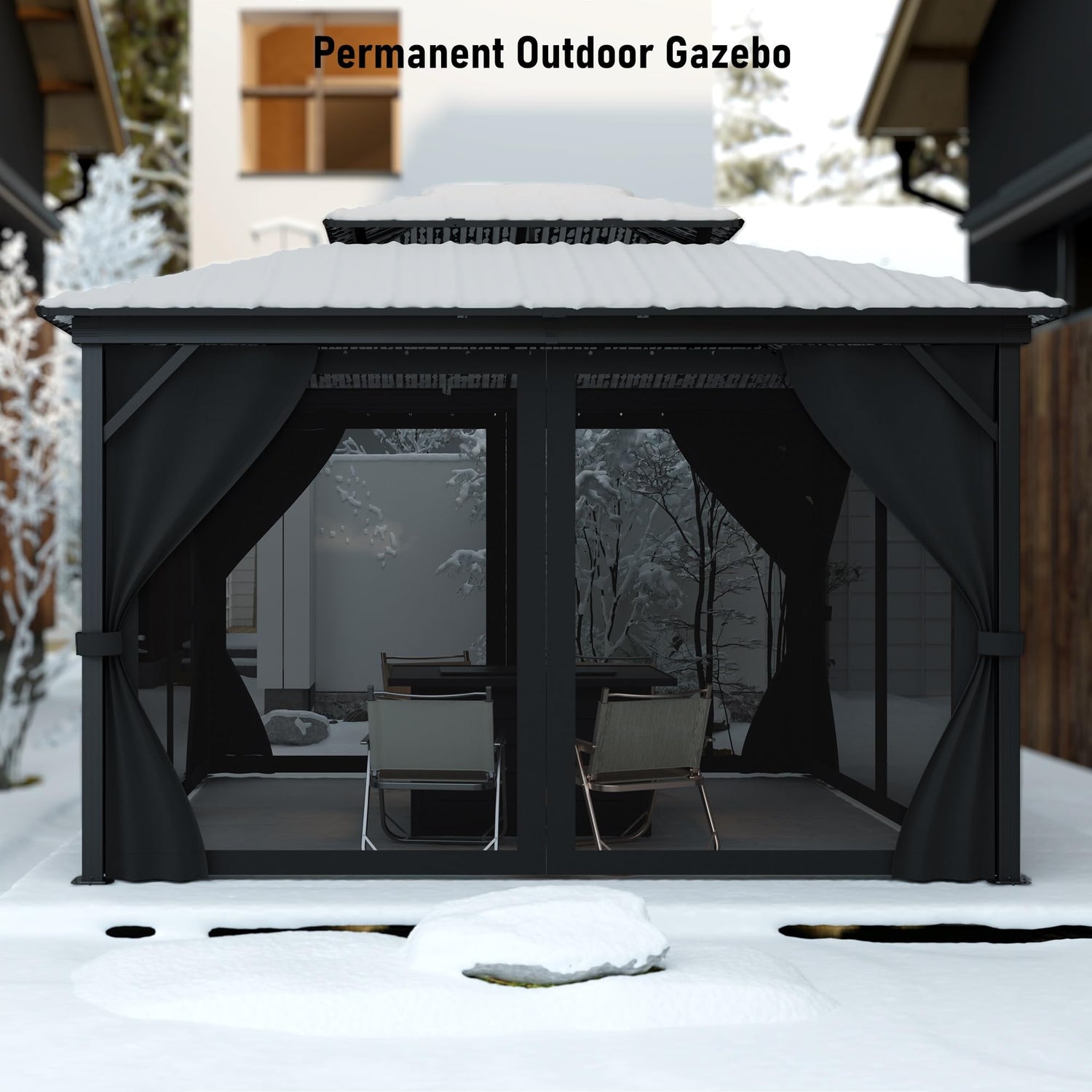 - [Durable Design] Double roof with 27 gauge steel sheet and high-strength aluminum alloy frame with 4''x4'' Reinforced poles for withstanding snow and high wind; ideal for year-round outdoor use
