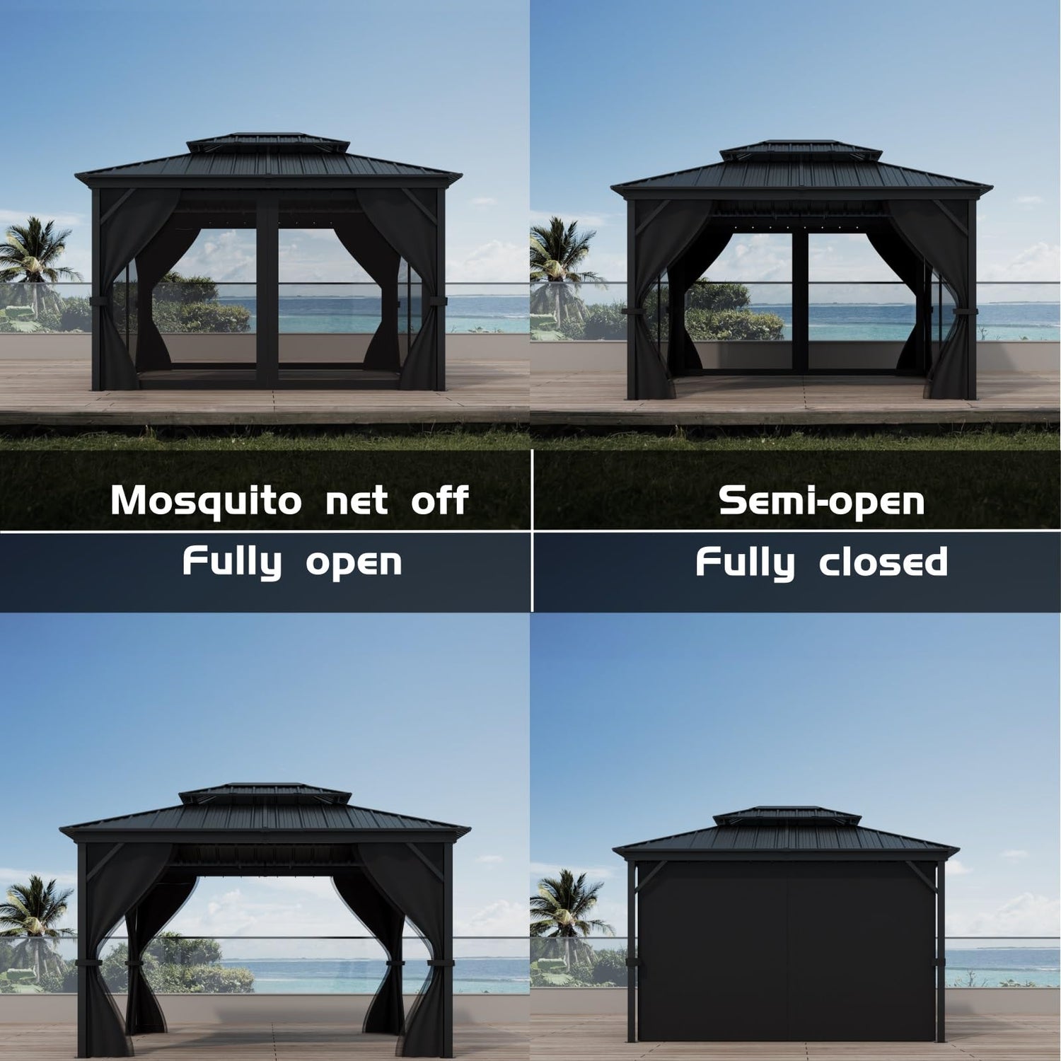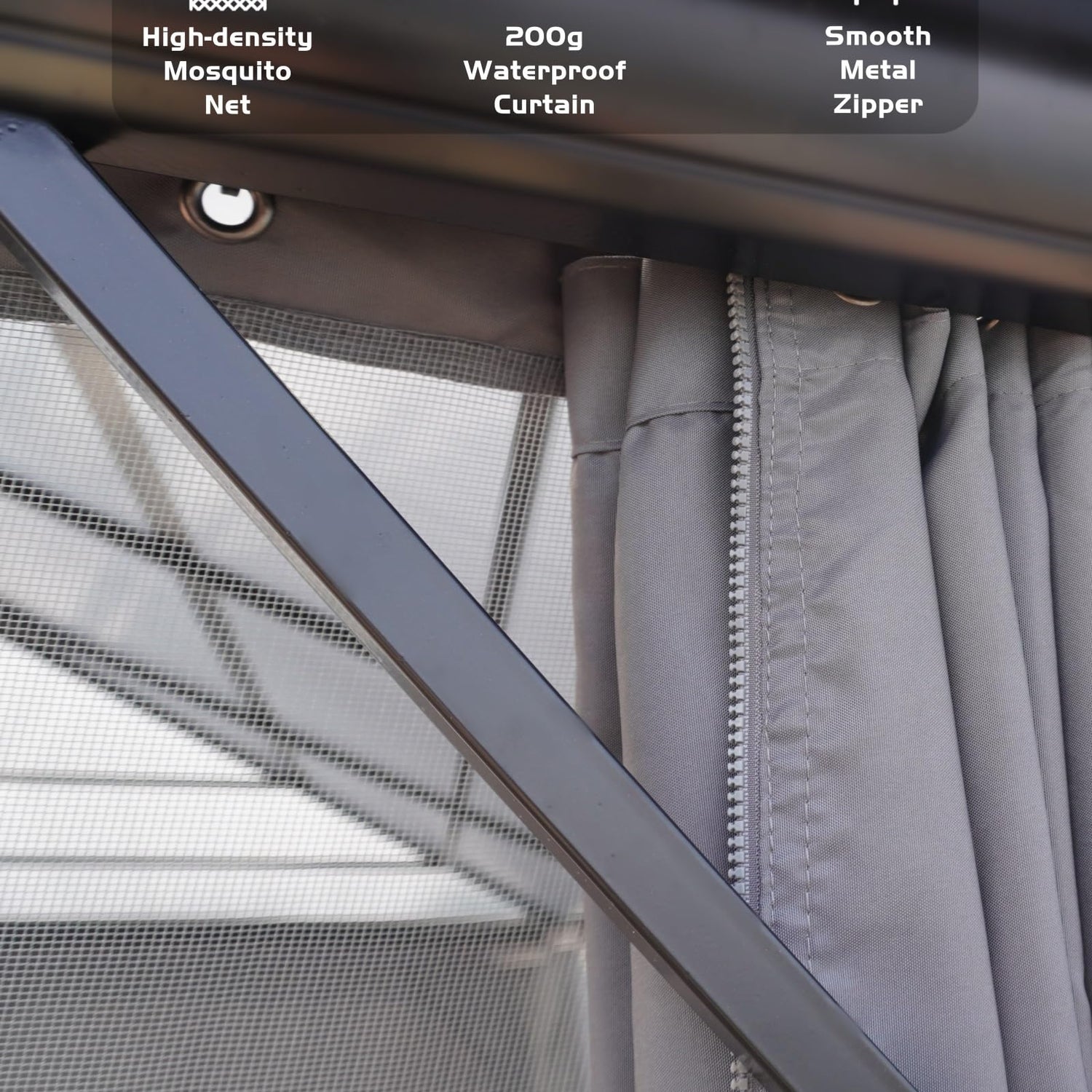 - [Privacy and Comfort] Independently controlled curtains and mesh offer light blocking, mosquito protection, and rain shielding; 200g polyester fabric ensures easy-to-clean and no fading for a cozy outdoor experience