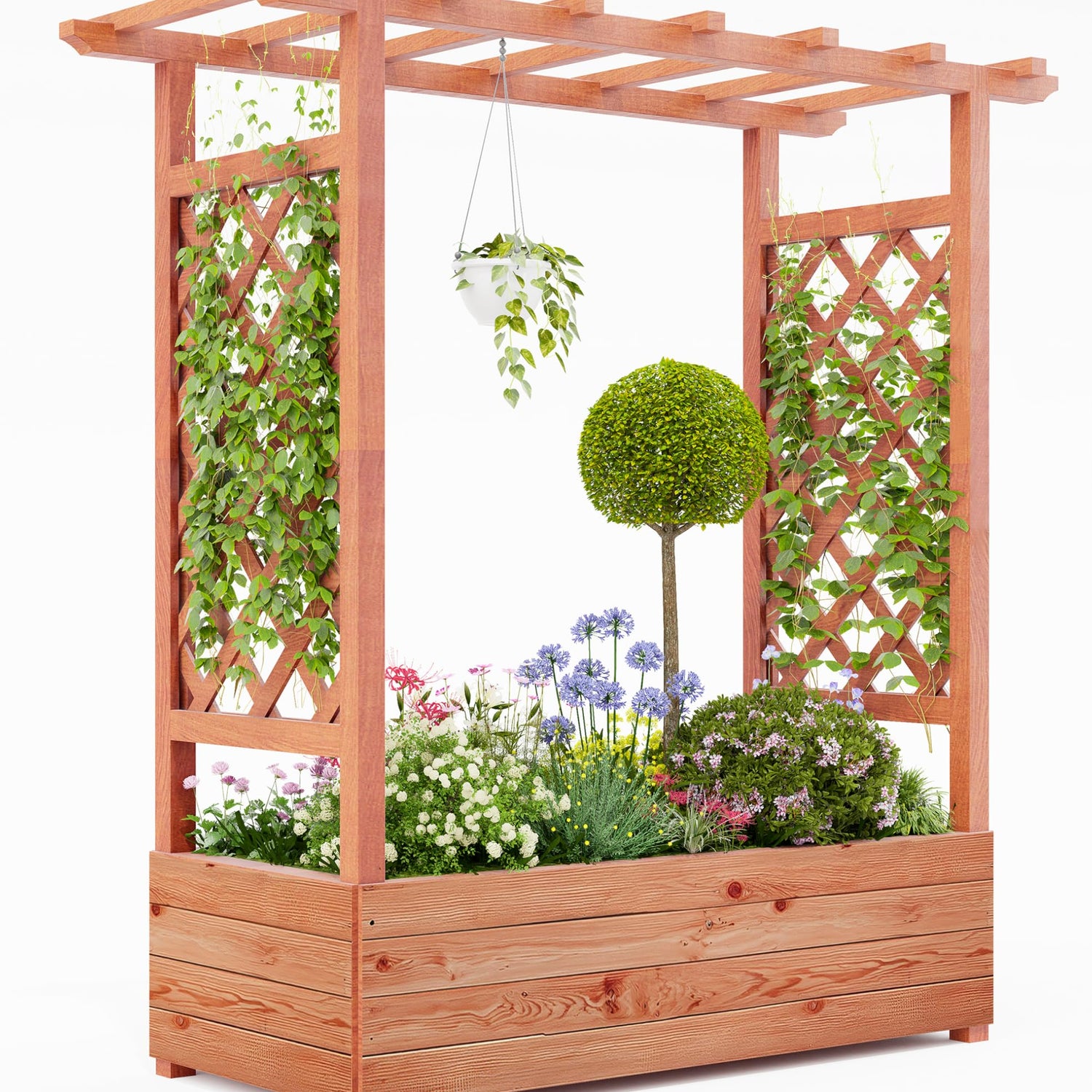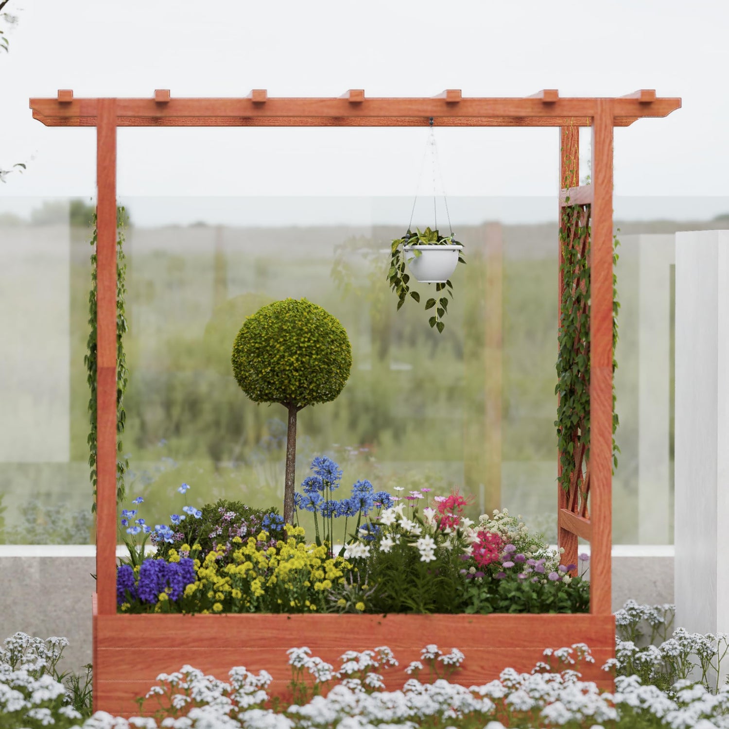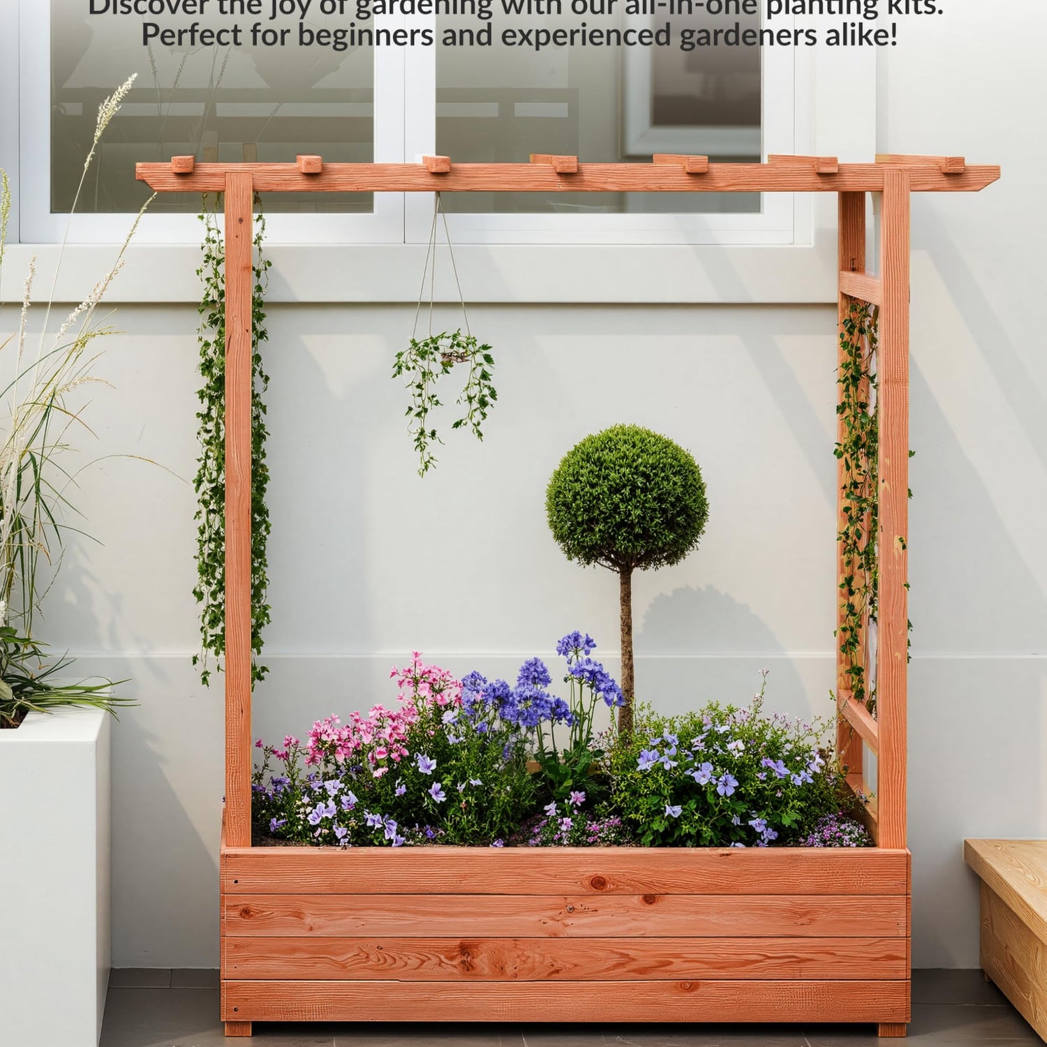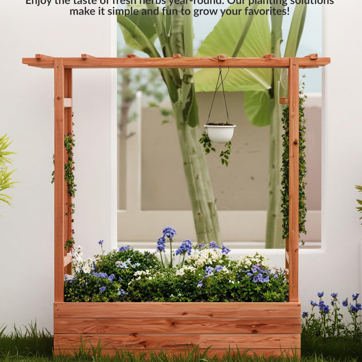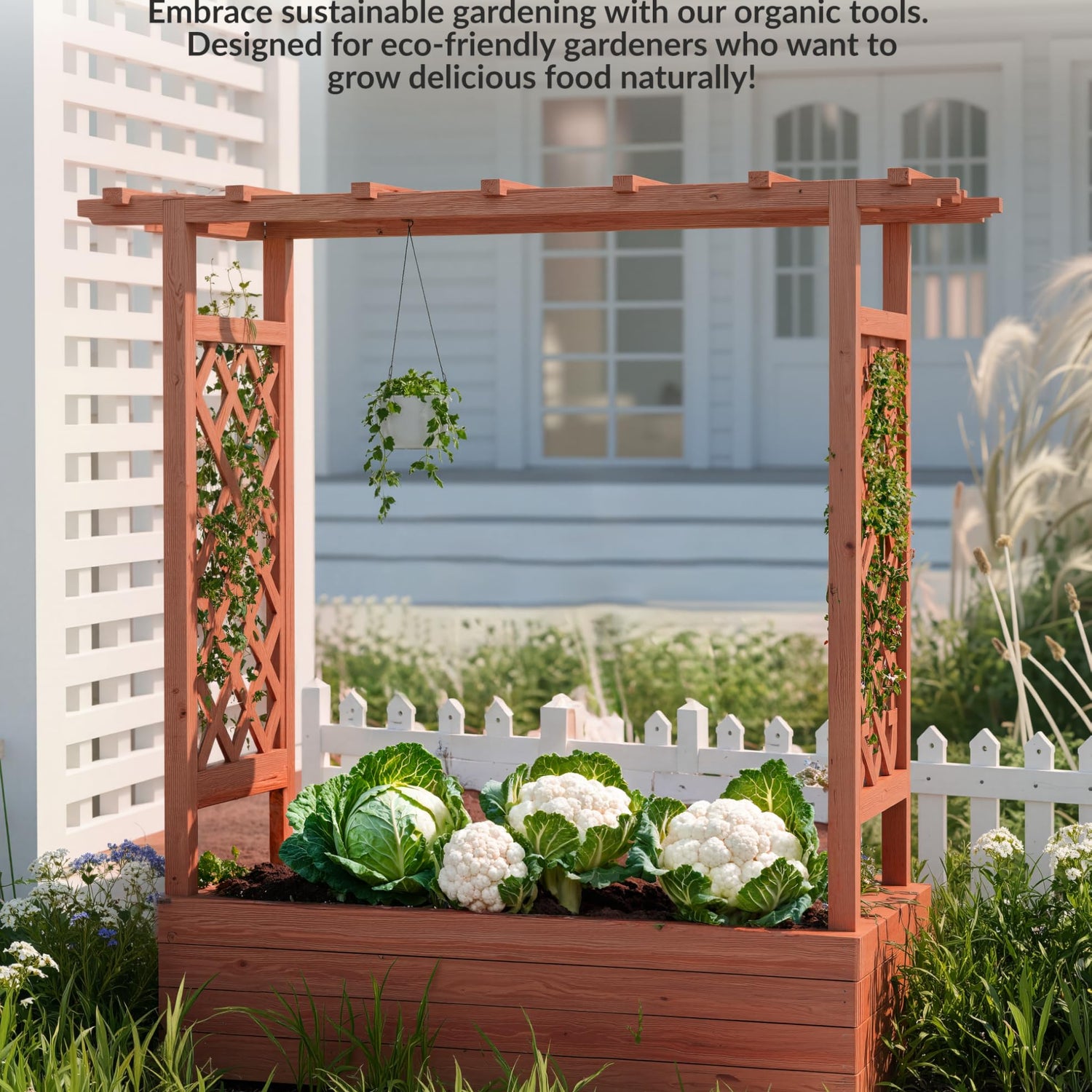 - Spacious and Functional Design: The raised garden bed features a large planter box with a hanging roof and two side trellises, offering ample space for climbing plants and flowers, making it an ideal freestanding option to maximize gardening potential