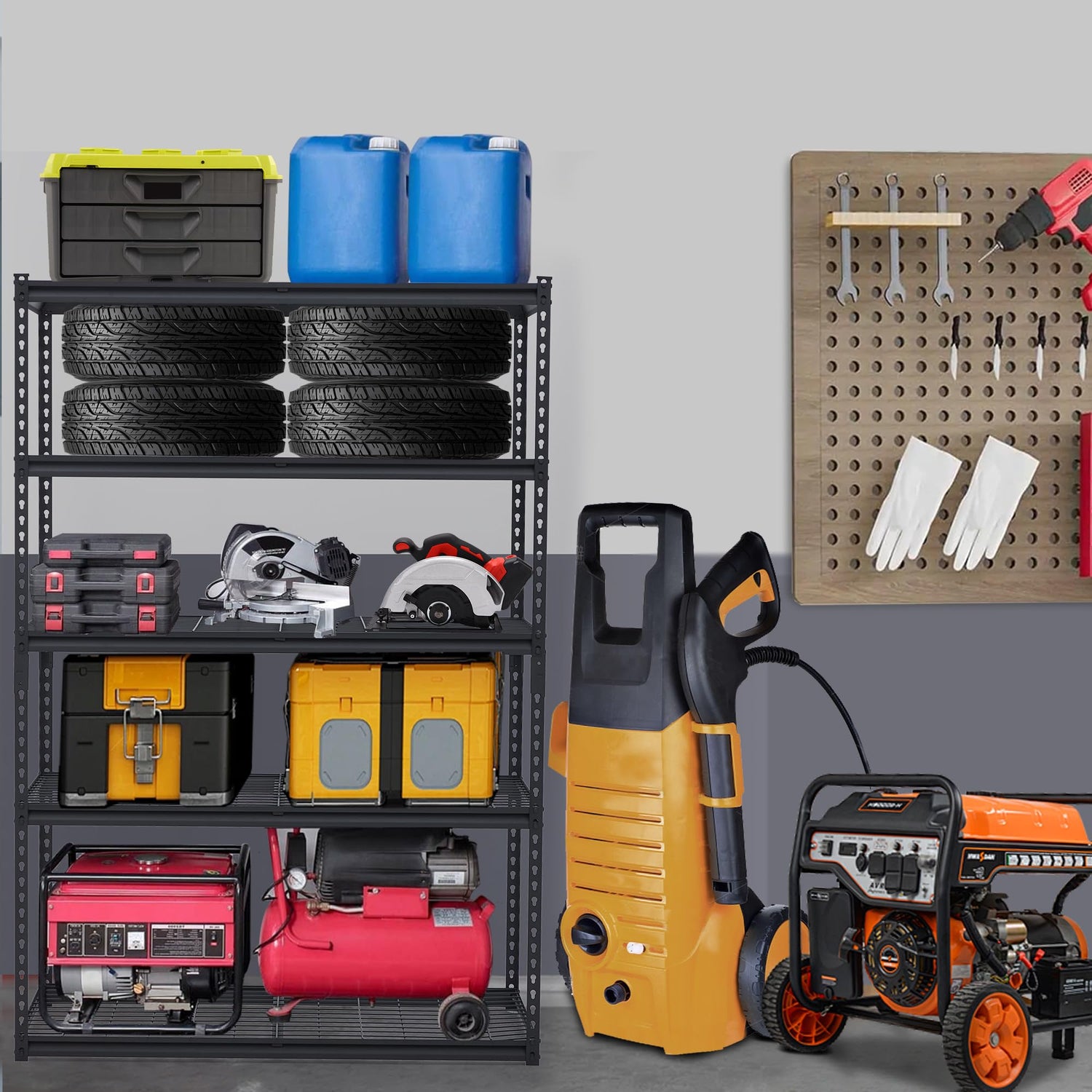 - Heavy Duty Shelf: Built with a robust metal frame to support up to 2500 LBS load capacity, ideal for storing heavy tools and equipment