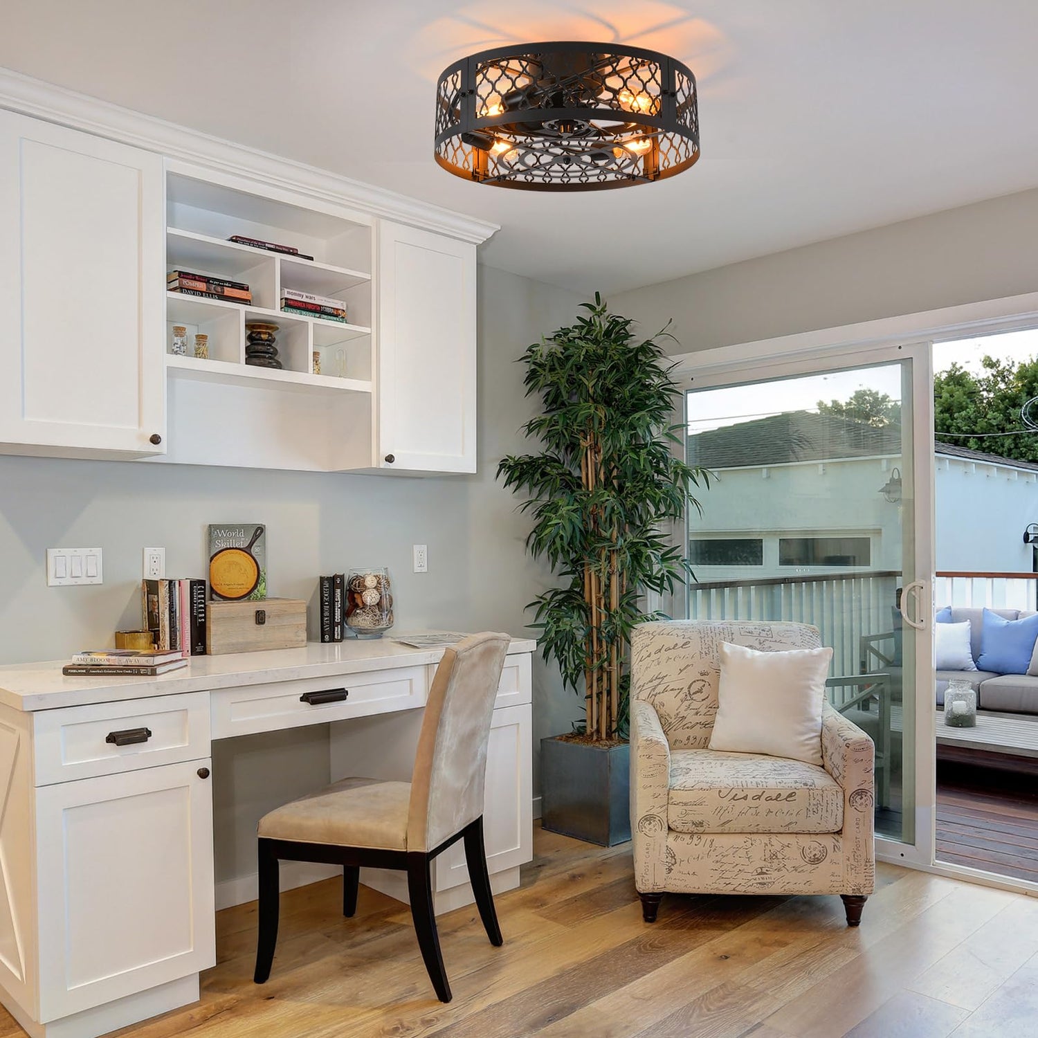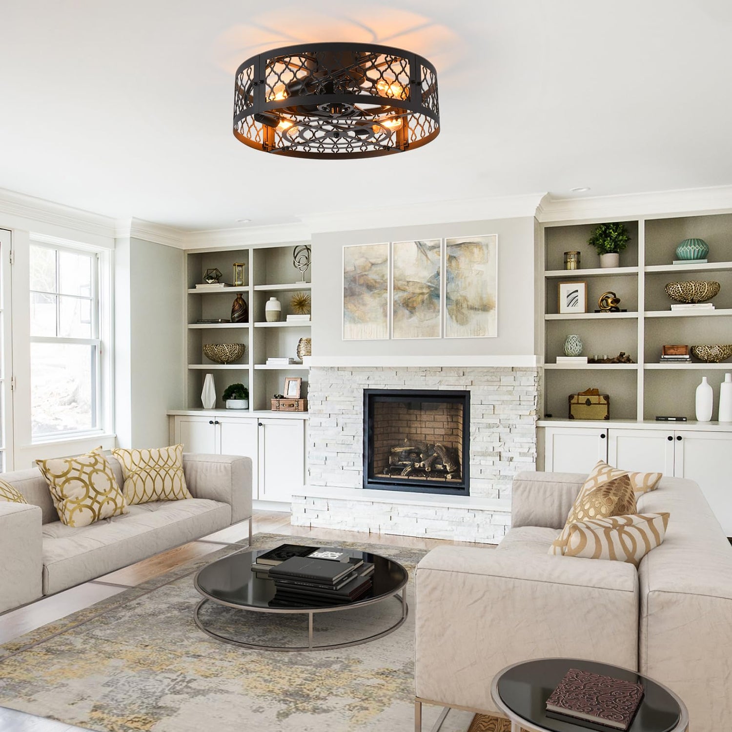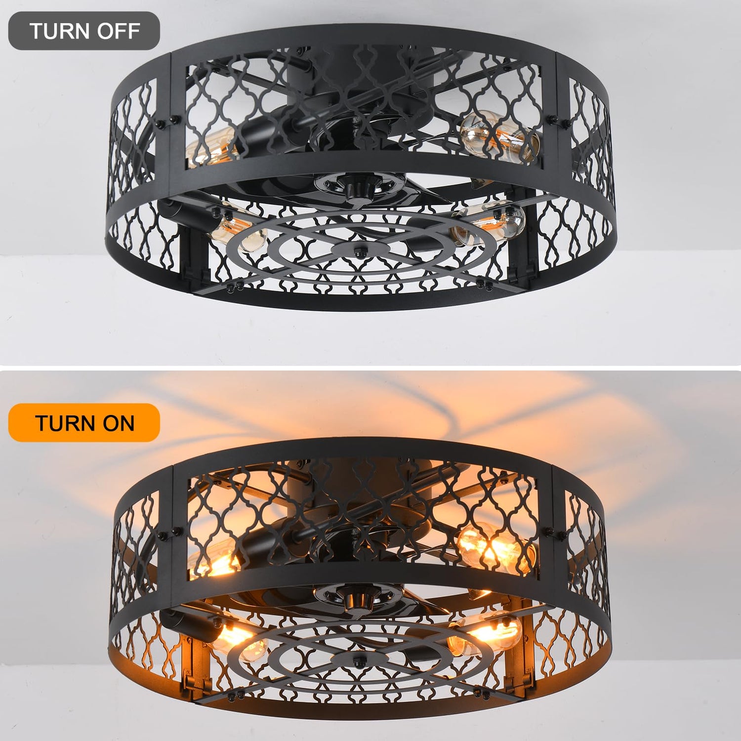 - Caged Design -- The low profile ceiling fan has excellent coloring process and quality control, which combines practicality and aesthetics. It's designed with the farmhouse and modern style——cage shaped frame, black painted finish and lacelike pattern, Suitable for bedrooms, kitchen and so on, add style and function to your space, upgrade your home decor.