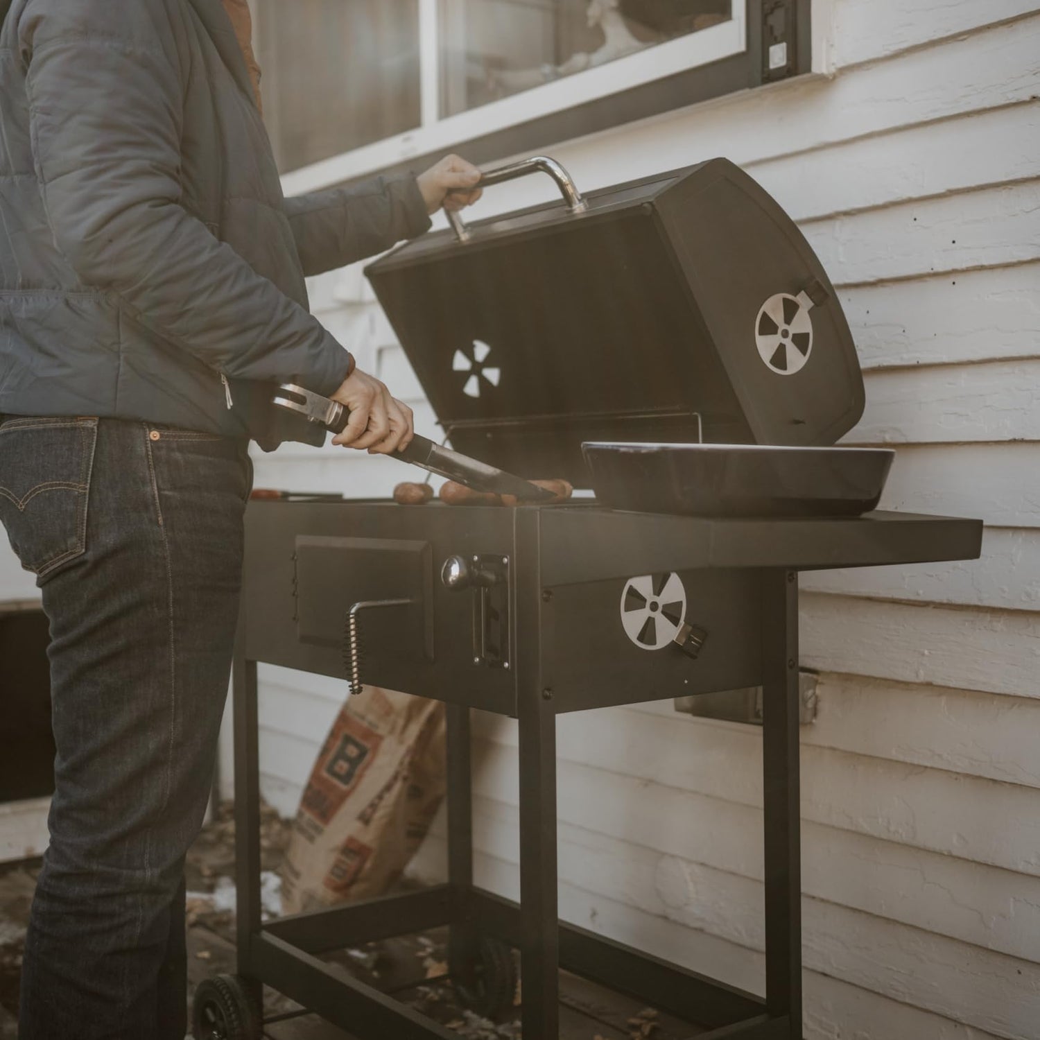 - Large Cooking Area: Our charcoal smoker is designed with a 24-inch grill grate and an elevated wire grate that provide more space and cooking flexibility, allowing you to prepare steaks and vegetables at the same time. You also enjoy extra storage space with the side tables where you can keep plates, utensils or seasonings at hand.
