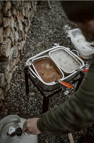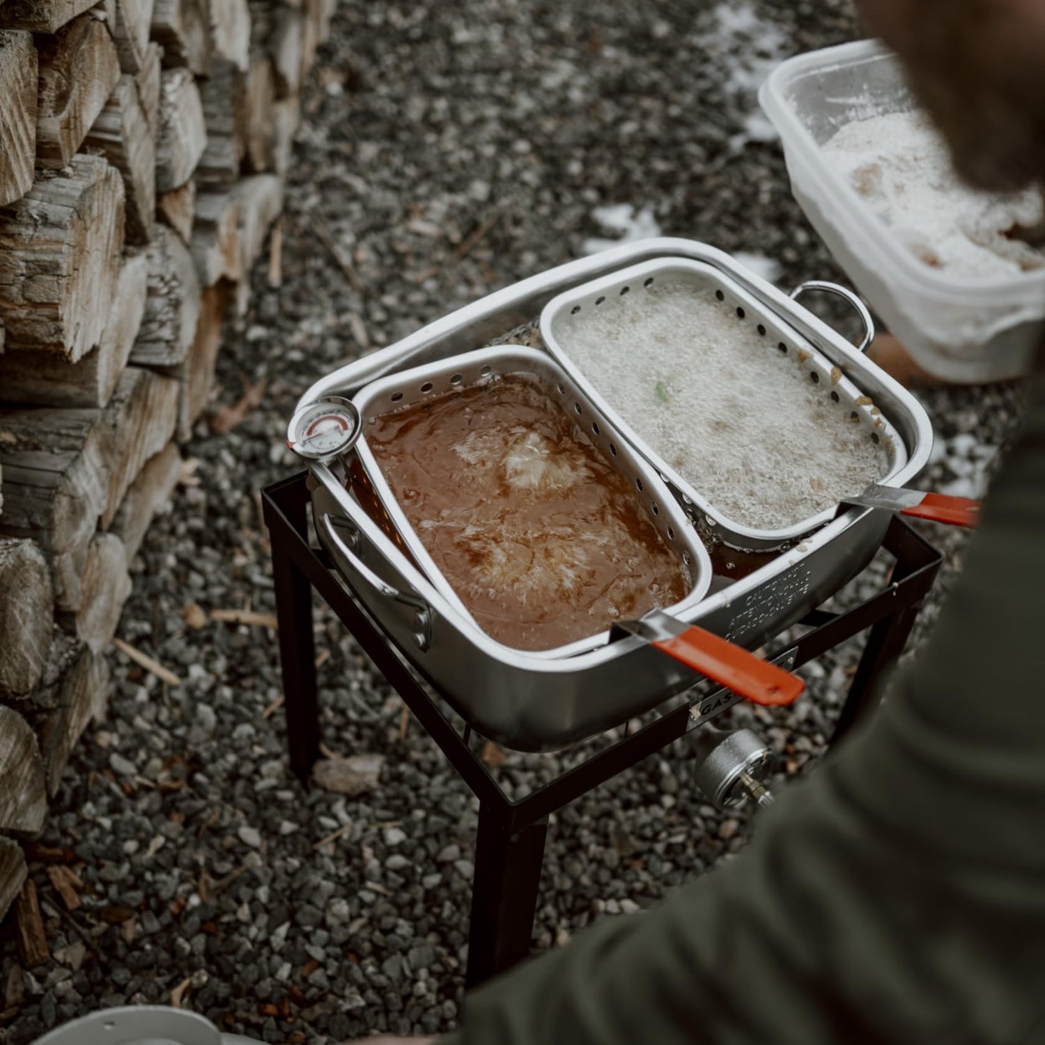 - Double Strainer Baskets: Easily prepare 2 different dishes at the same time with the 2 included strainer baskets, perfect for outdoor cooking, family BBQ, camping or professional chefs! No more wasted time and effort with multiple refills!