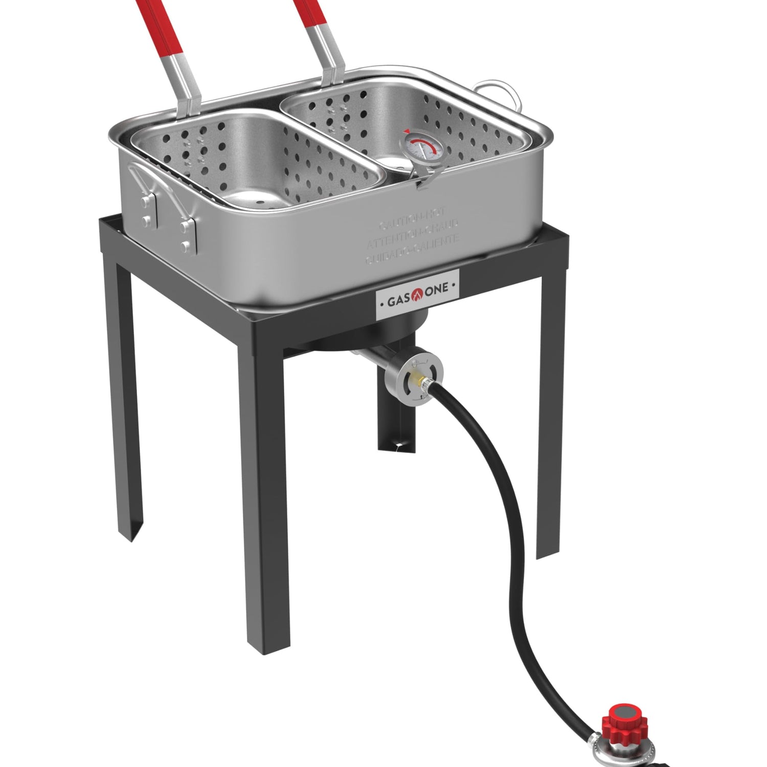 Gas One Double Fryer with 2 Baskets Propane Burners for Outdoor Cooking – Heavy Duty 18Qt Aluminum Pot Outdoor Deep Fryer with Cast Iron Burner – Propane Deep Fryer with Thermometer