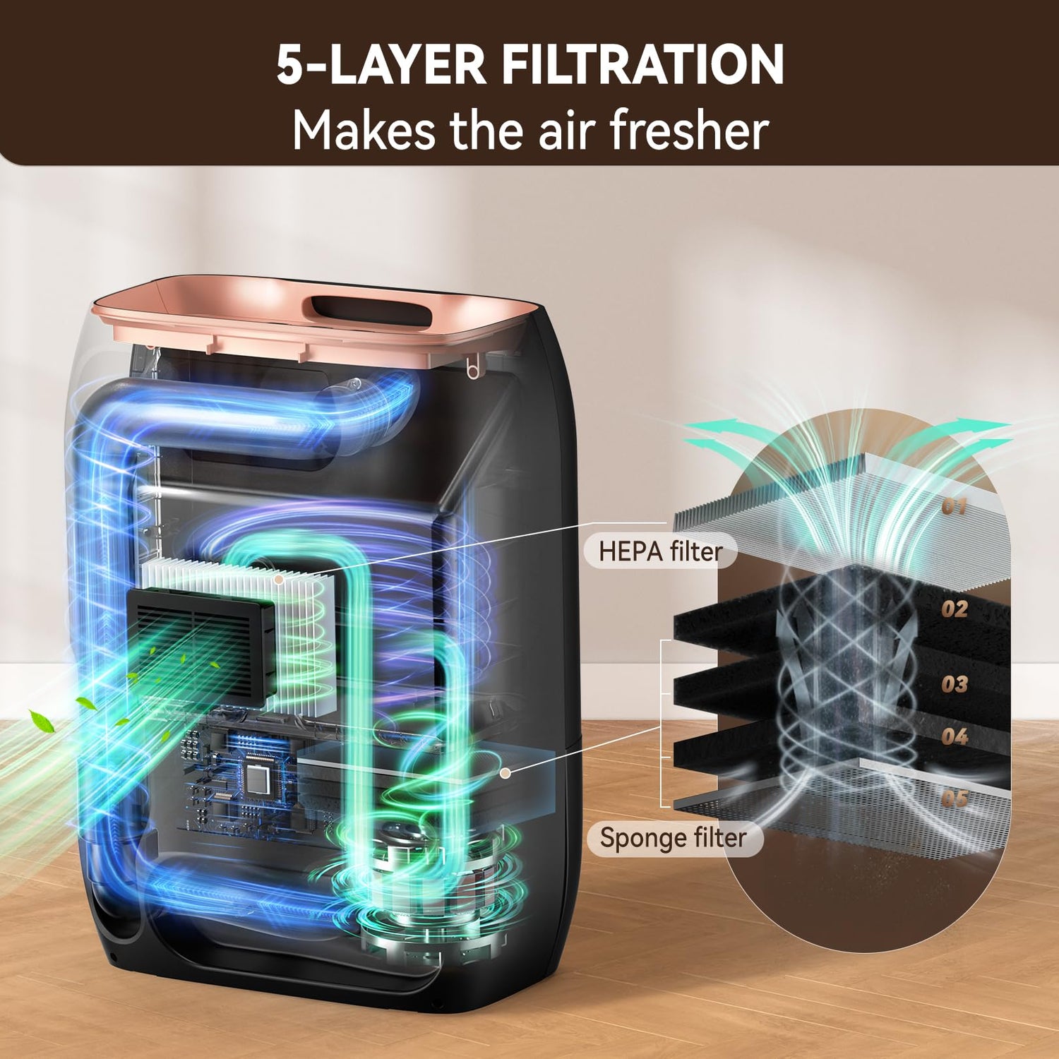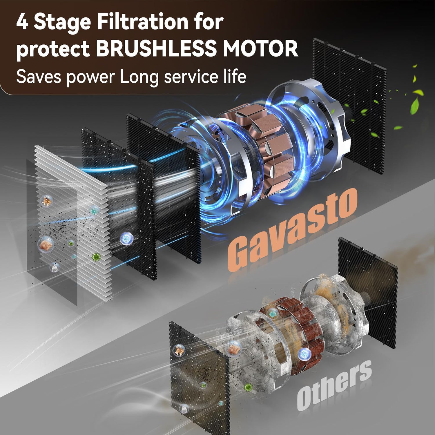 - 5-Layer Filtration: Equipped with a 5-layer high-efficiency filter, the GAVASTO vacuum cleaner traps dust, dirt, and debris from the air, returning clean air to your environment.