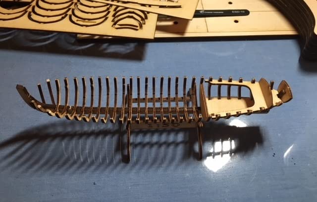 GAWEGM Ship Model - Whole Ribbed Double Mast Fishing Boat with Metal Accessories
