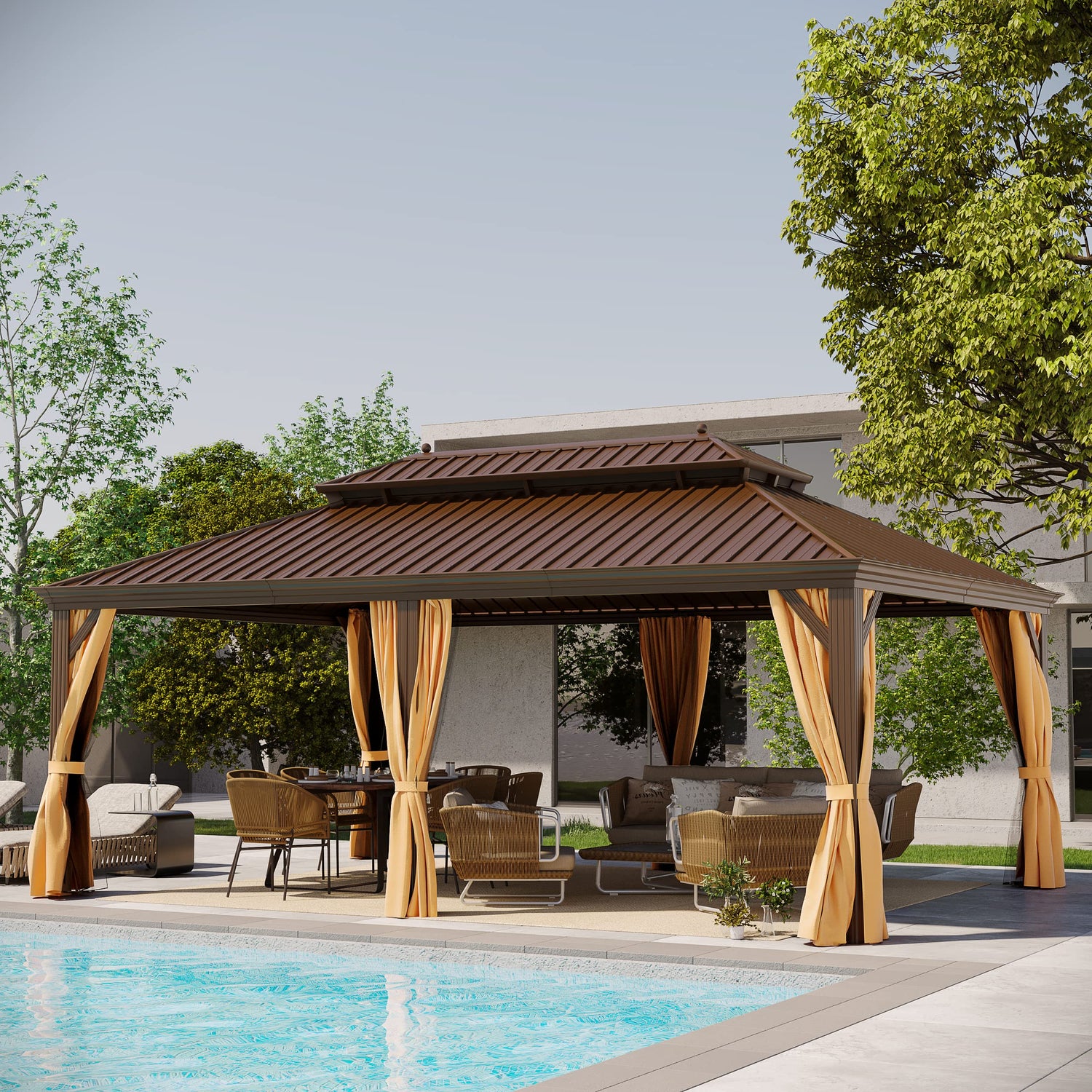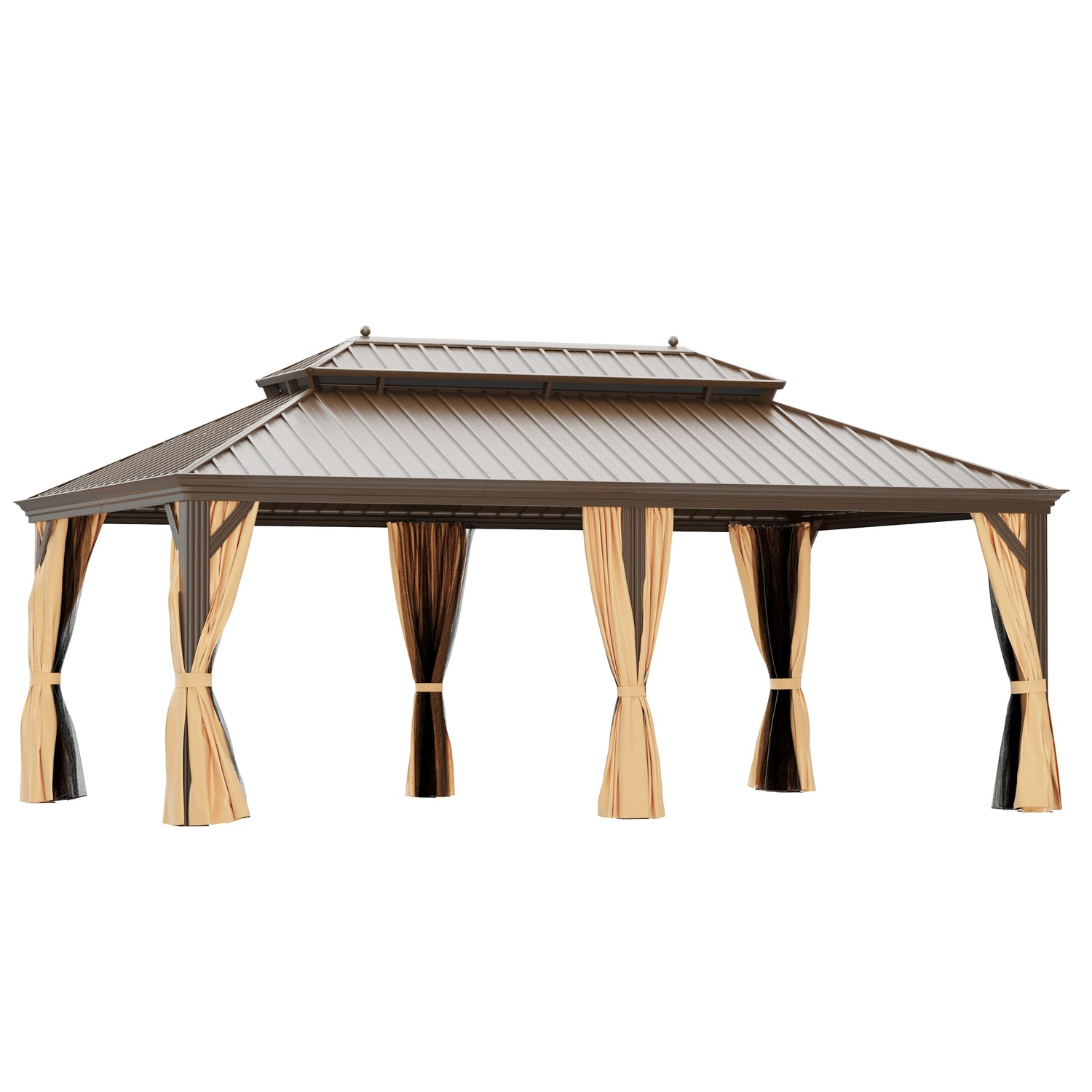 GAZEBEST 14'x20' Hardtop Gazebo Outdoor Aluminum Patio Gazebo Double Roof Galvanized Steel Gazebo Canopy with Netting and Curtains,for Garden Patio,Patio Backyard,Deck and Lawns