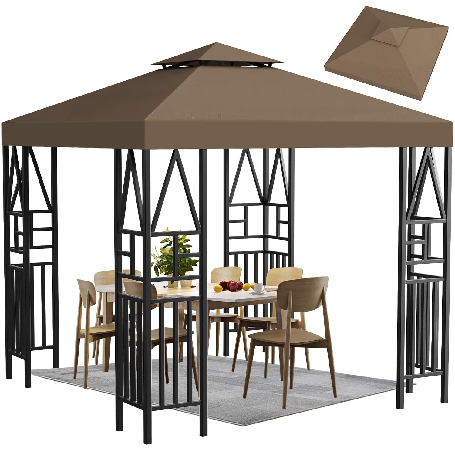 Gazebo Canopy Replacement 118"x118" Outdoor Canopy Shelter for Smaller 10x10ft Top Double Tiered Canopy Cover