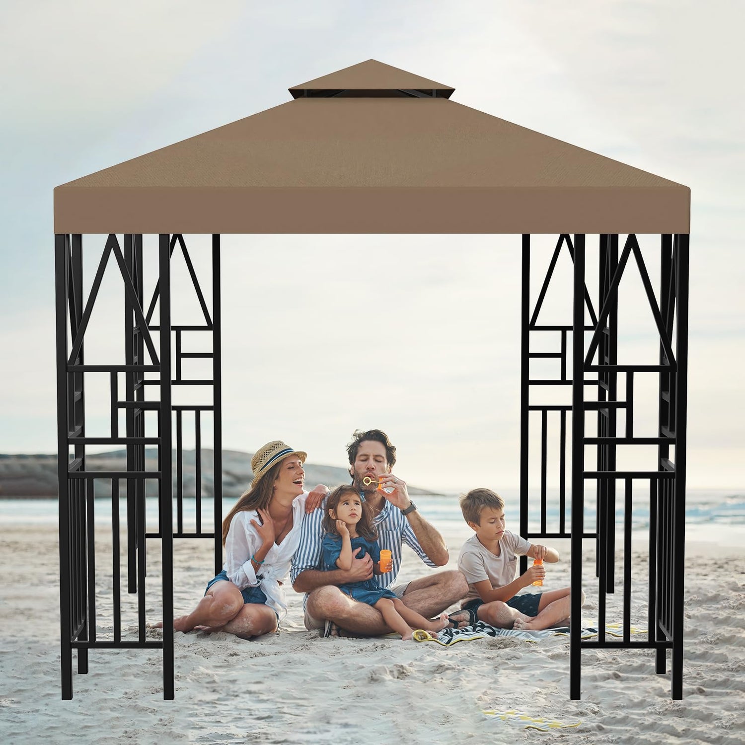 - MORE BREATHABLE: Top double tiered design, good wind vented, provide large shade and excellent airflow, keeping everyone cool in the shade. Expansion size 10x10 FT, comfortably accommodates 6-8 people.