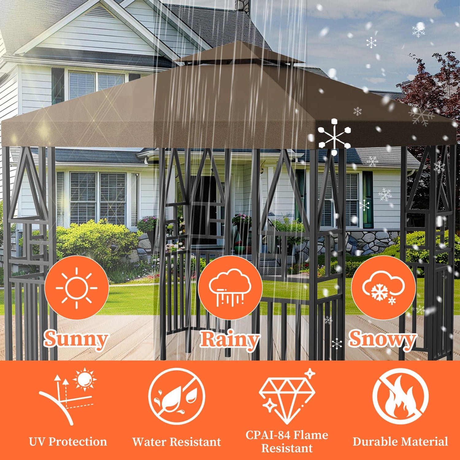 - SUN PROTECTION&WATERPROOF: Made of upgraded 300D polyester, UV protection and water repellent gazebo canopy, which protect you from light rain and sun.