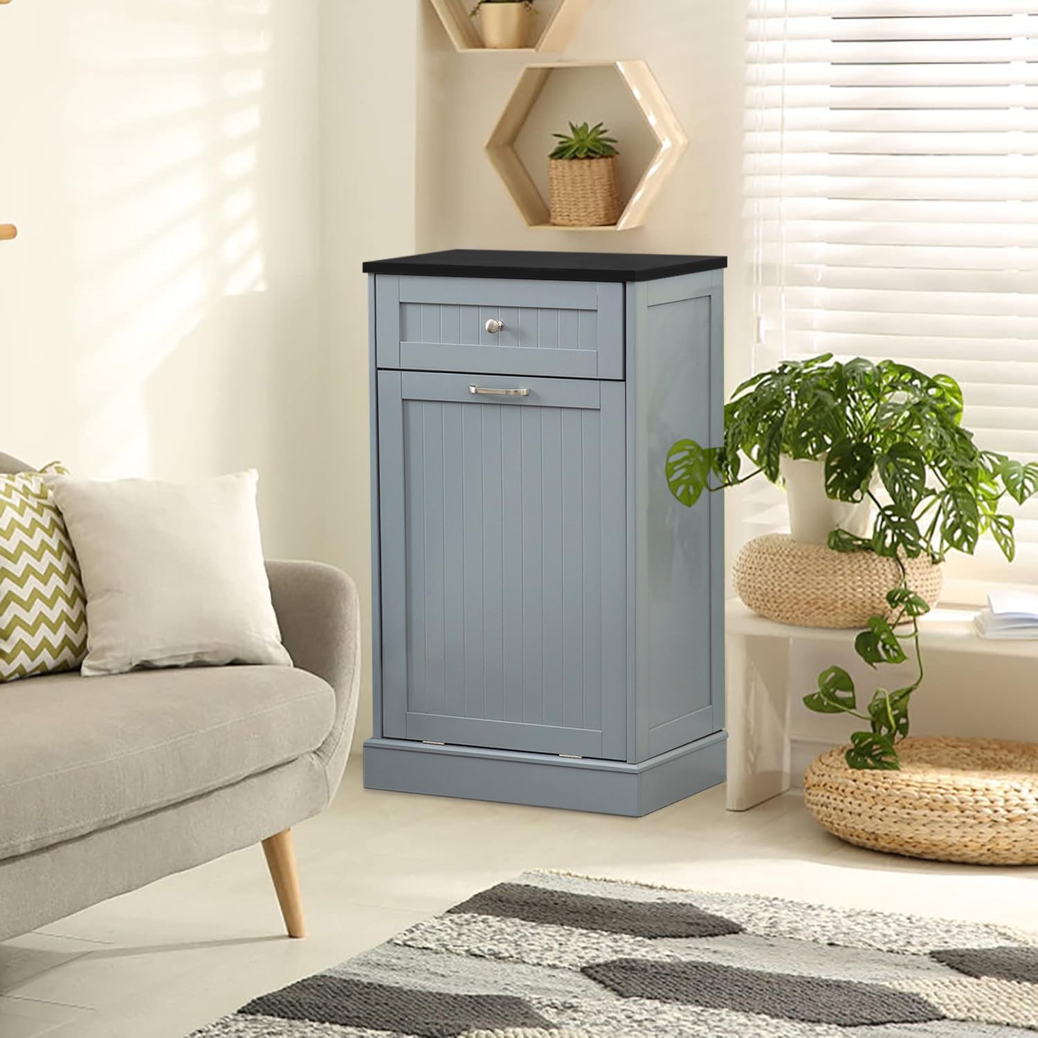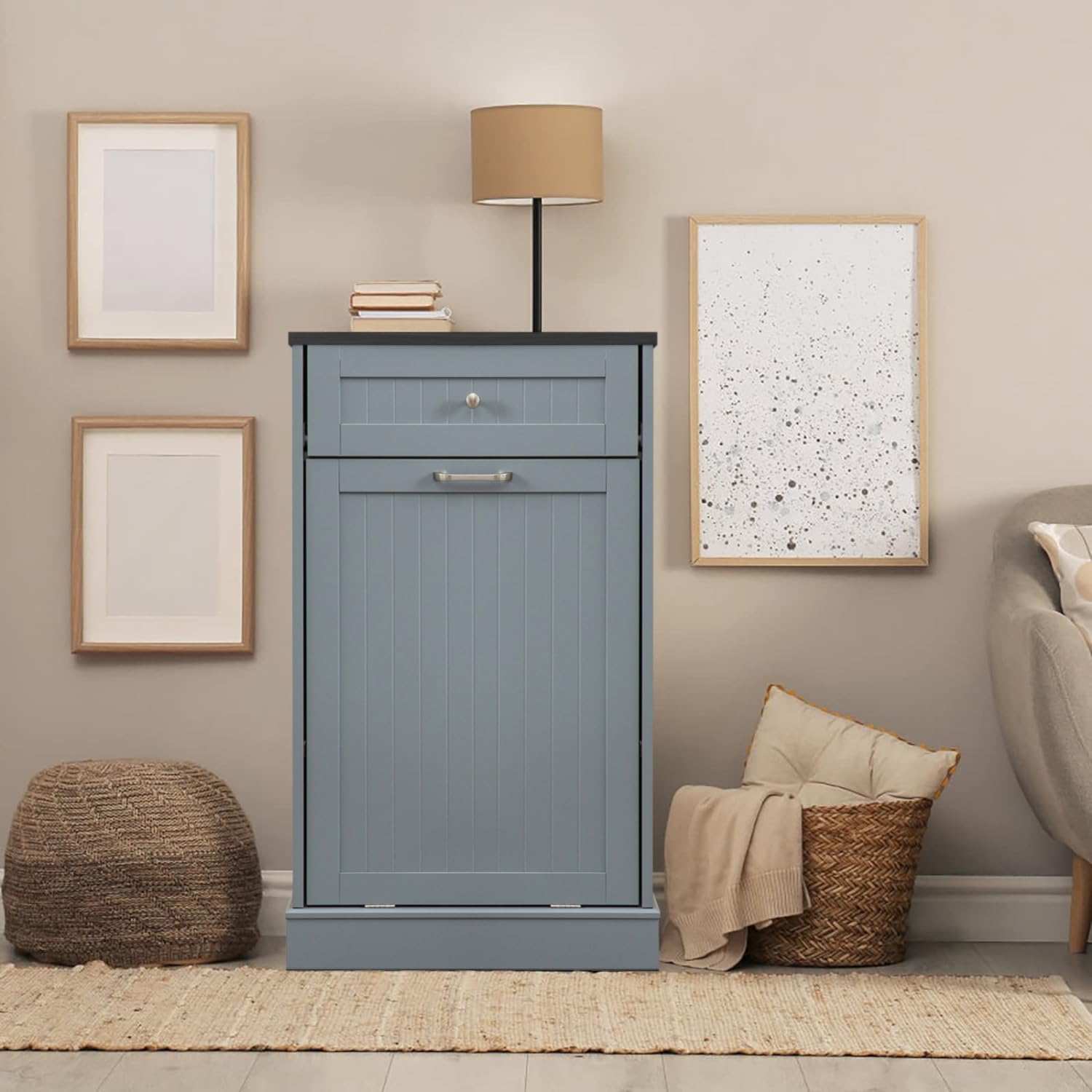 Details: GAZHOME Tilt Out Trash Cabinet, Wooden Free Standing Trash Cabinet,Recycling Cabinet with Hideaway Drawer,10 Gallon Tilt Out Trash Cabinet Kitchen(Gray)