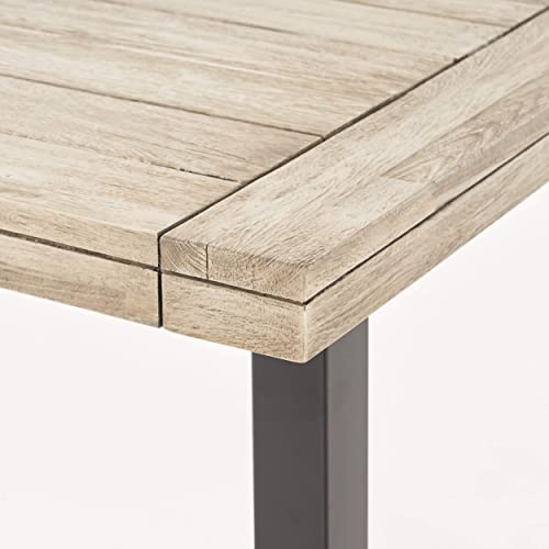 Details: Start your summer off right by hosting a lively get-together under the warm evening sky with our outdoor dining table. From dinner soirees to casual afternoon barbeques, our dining table will have you covered for all sort of occasions. With clean, minimalistic lines, our table is perfect for seating up to eight people. Featuring a gorgeous acacia wood table top and a smooth metal frame, our dining table offers your backyard or patio space a modern industrial look for a trendy transformation. Includes: One (1) Dining Table Material: Acacia Wood Leg Material: Iron Finish: Light Gray Leg Finish: Black Assembly Required Hand Crafted Details Dimensions: 36.00 inches deep x 79.00 inches wide x 30.00 inches high