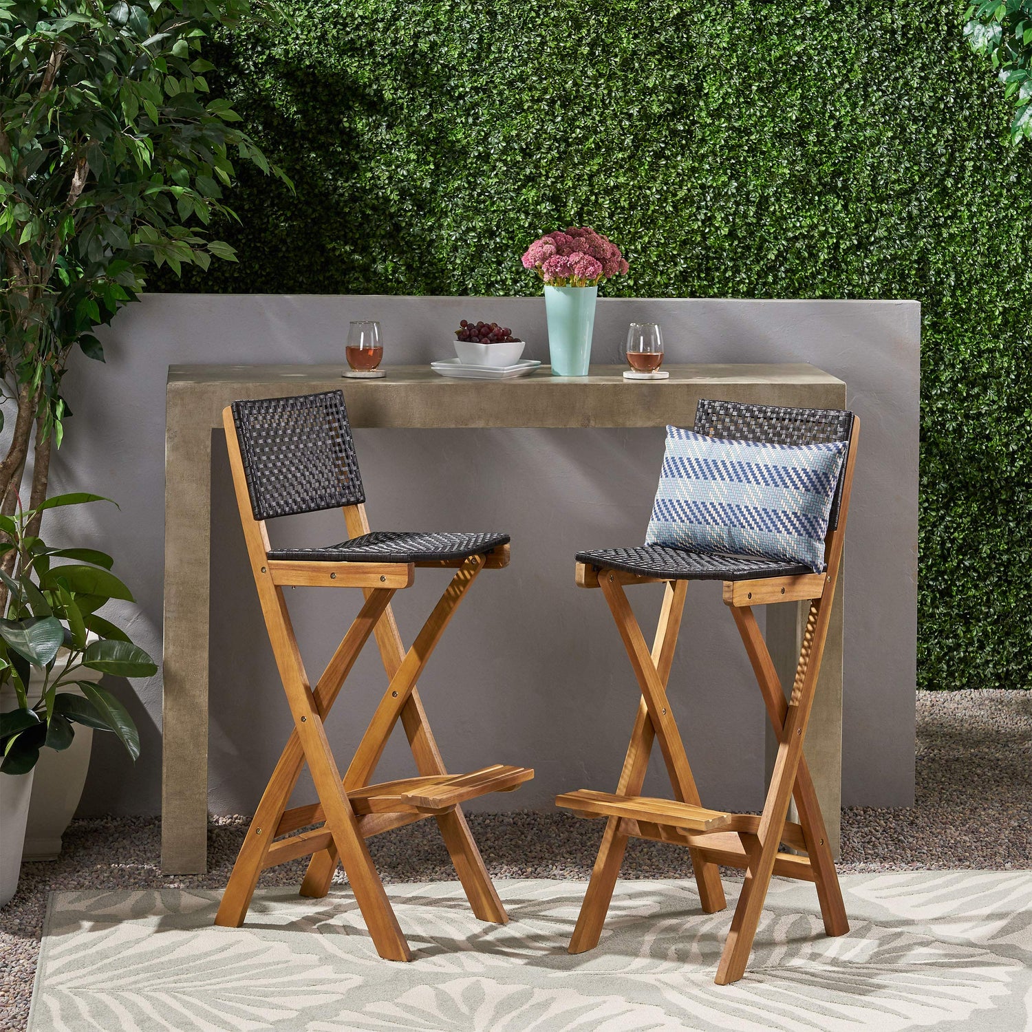GDFStudio Outdoor Folding Acacia Wood Barstools (Set of 2), and Brown