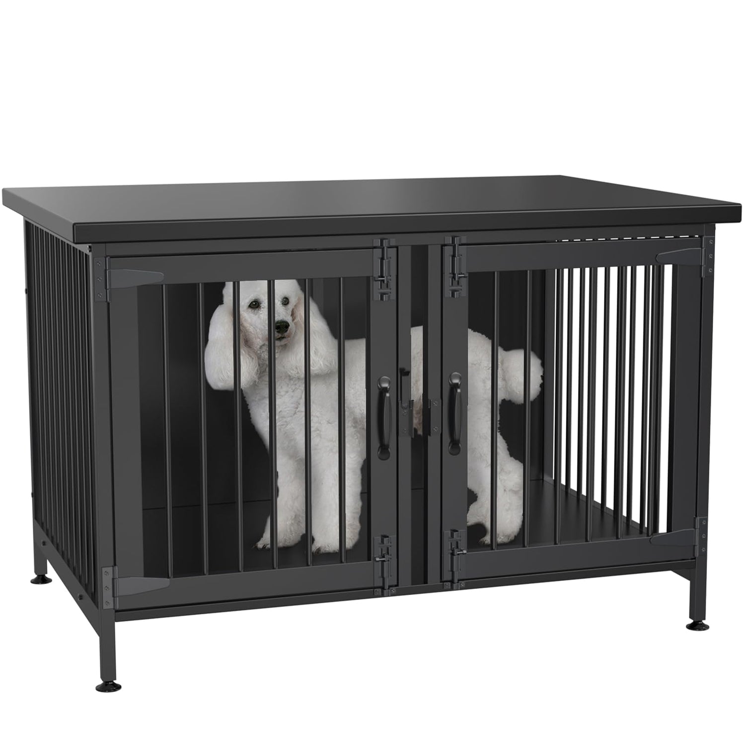 - Double door design & Adjustable feet: Double Doors allow safe ease of in and out access for your pet. If floor is not perfectly flat , this crate can be kept stable by the adjustable feet.
