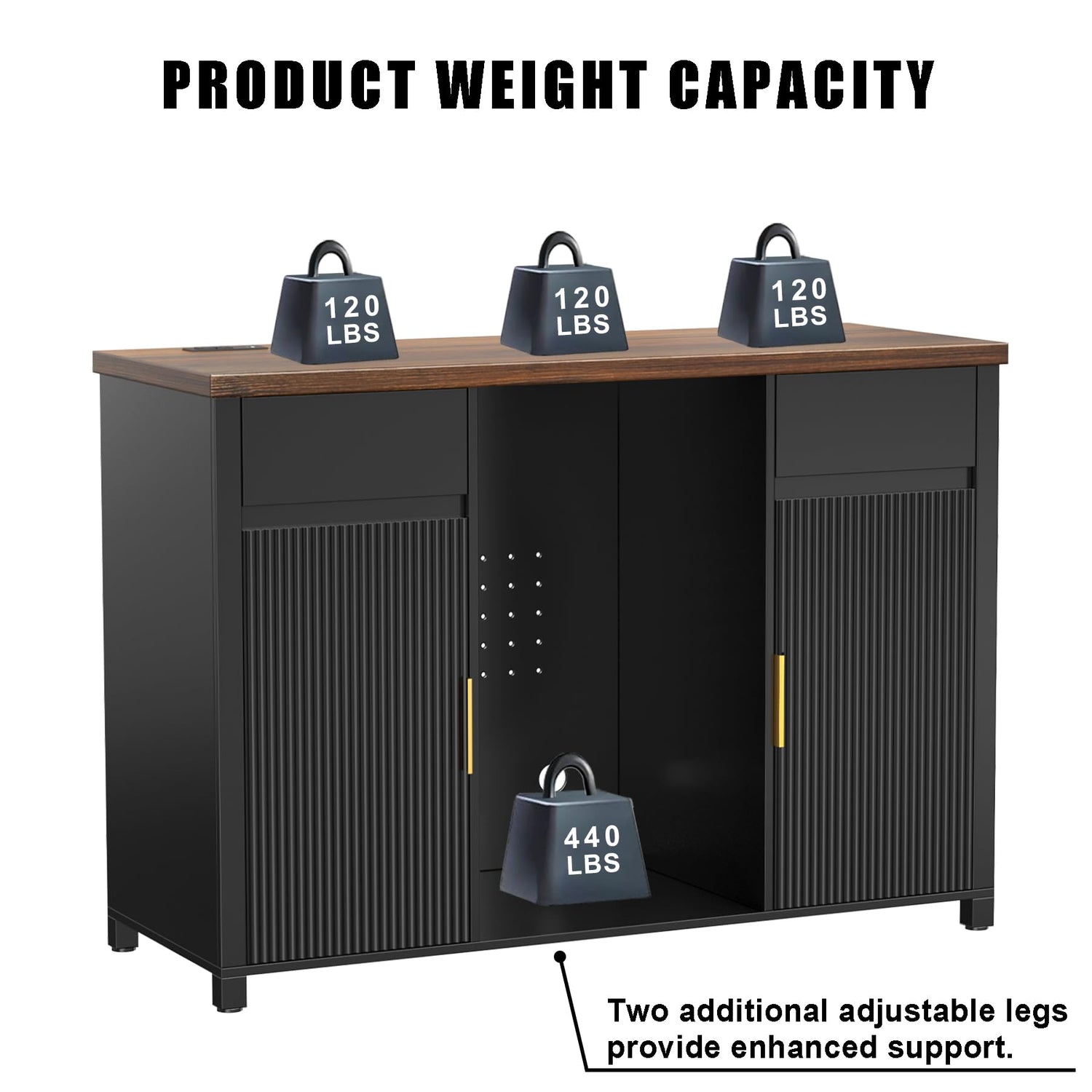 - 【Modern Fluted Design】Black cabinet body, fluted doors, and warm brown wood top combine into a sleek, upscale look—works great as a bar cabinet, buffet, or sideboard.